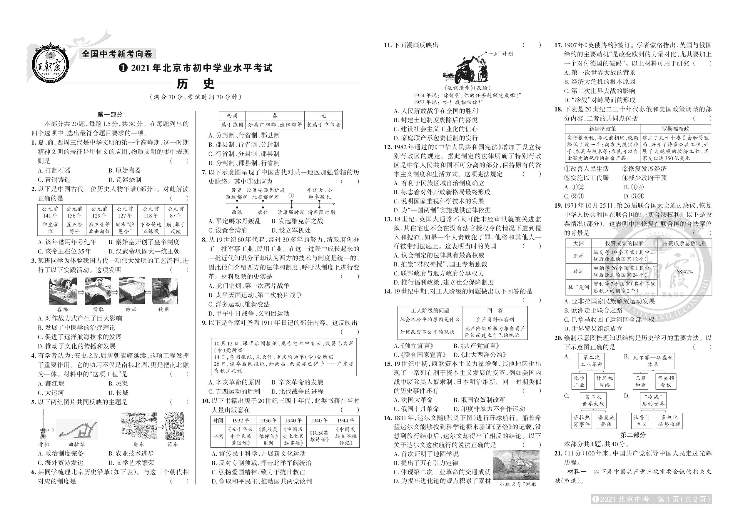 试卷1 2021年北京市中考真题·历史