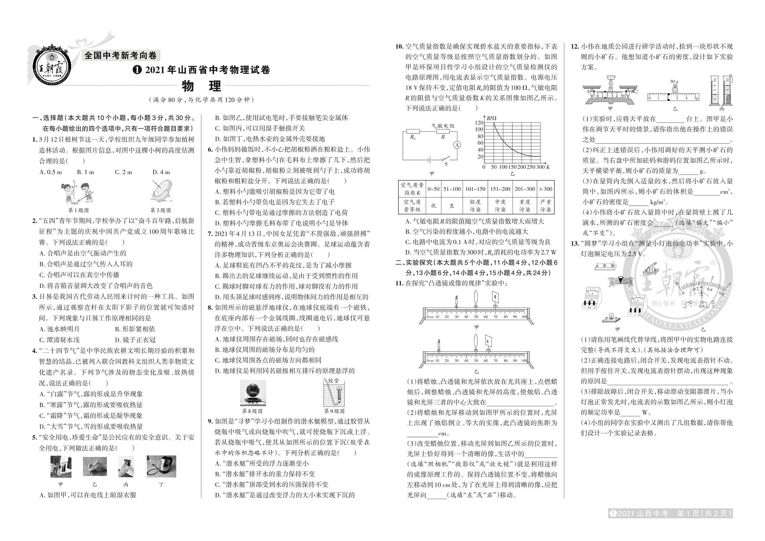 试卷1 2021年山西省中考真题·物理