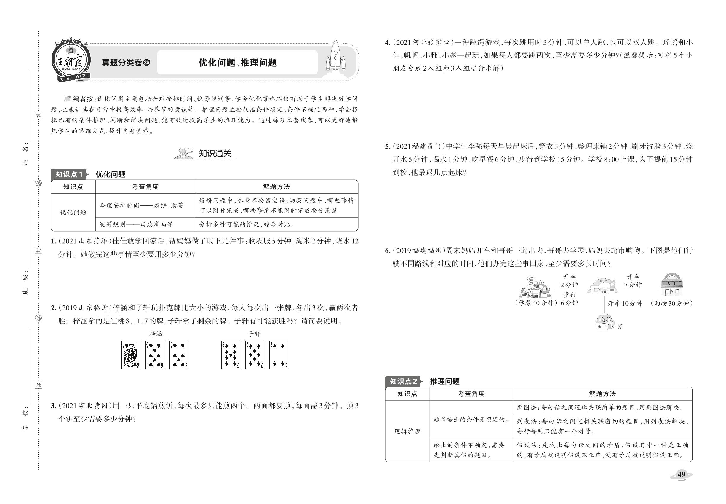 小升初数学真题分类·王朝霞精编卷——优化问题、推理问题【25】