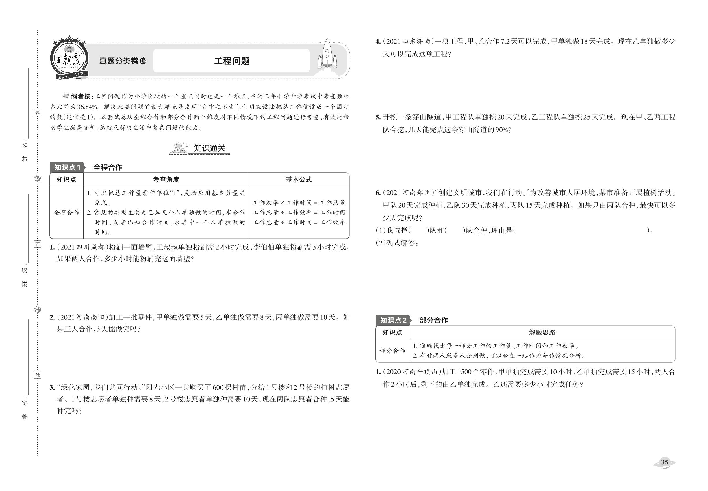 小升初数学真题分类·王朝霞精编卷——工程问题【18】