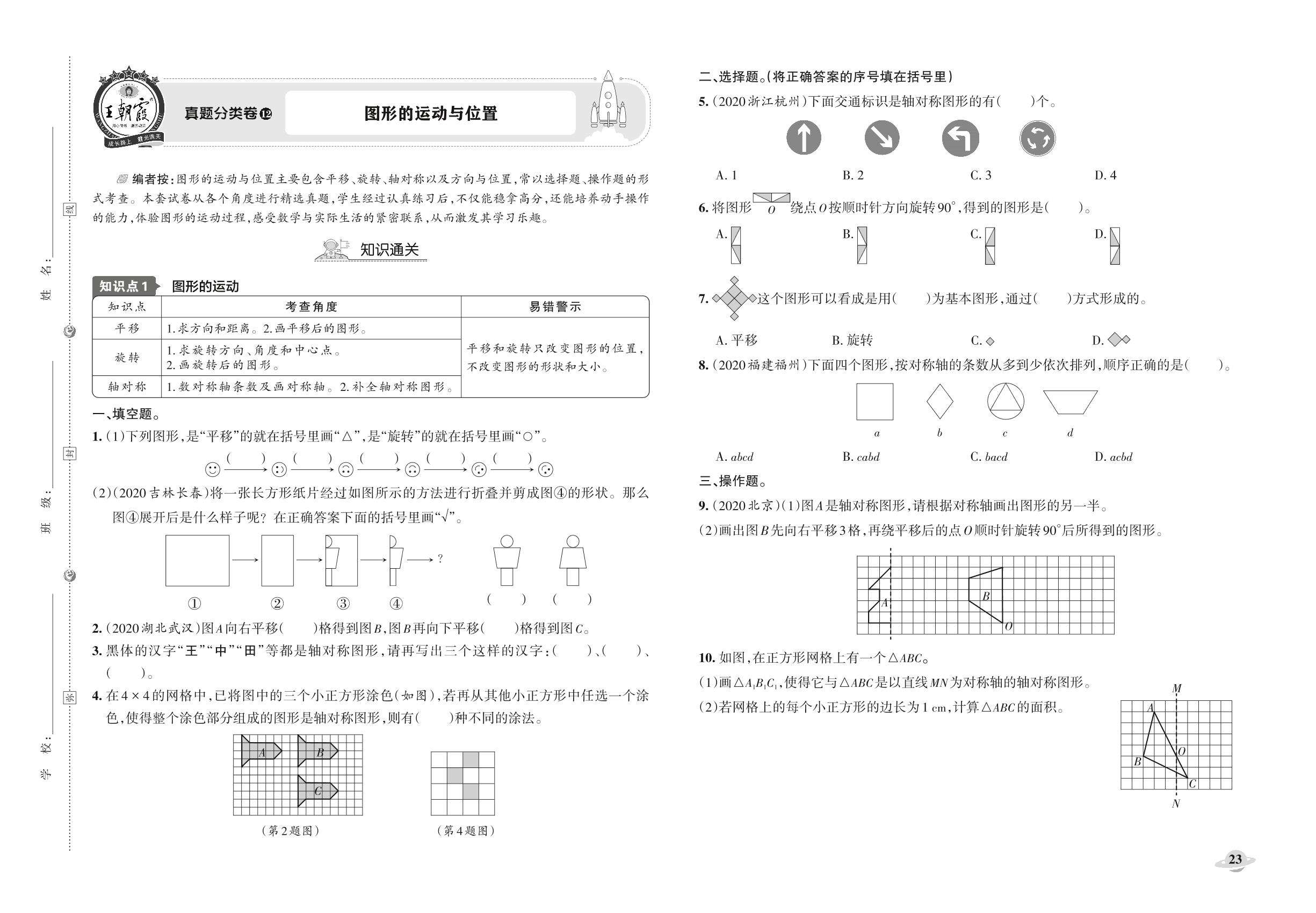 小升初数学真题分类·王朝霞精编卷——图形的运动与位置【12】