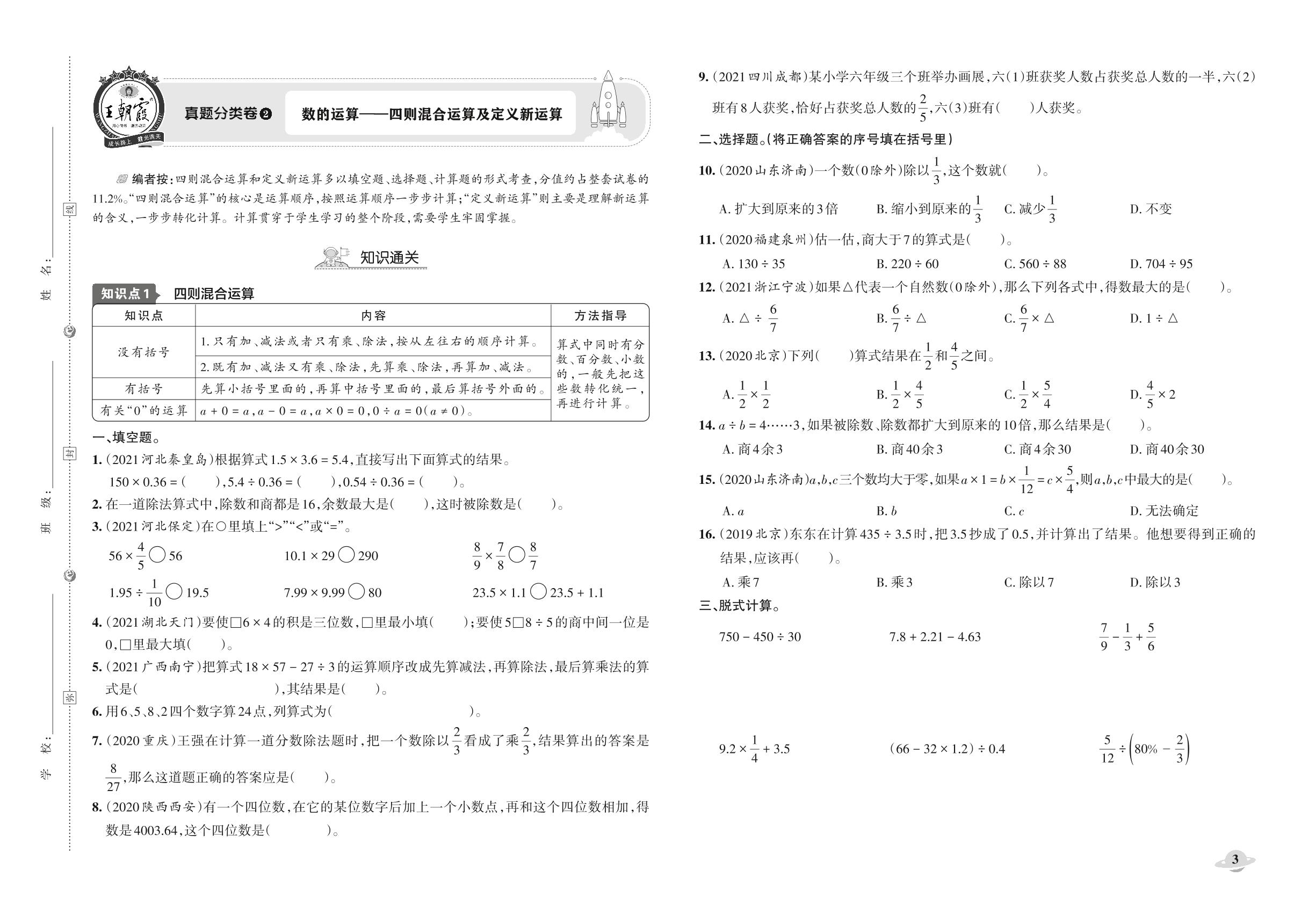 小升初数学真题分类·王朝霞精编卷——数的运算——四则混合运算及定义新运算【2】