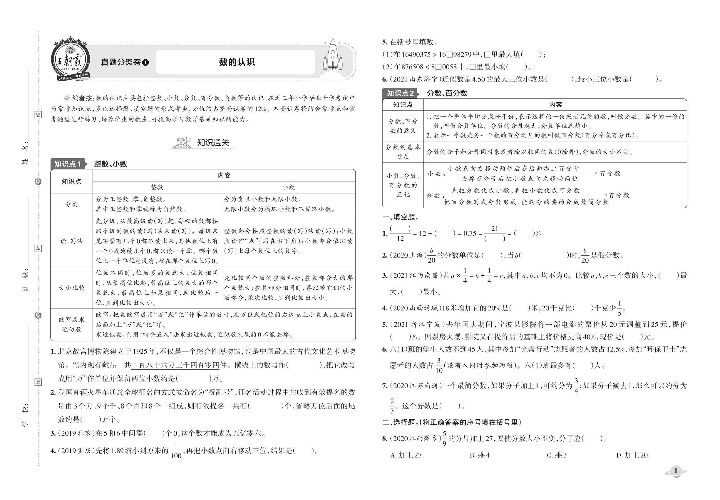 小升初数学真题分类·王朝霞精编卷——数的认识【1】