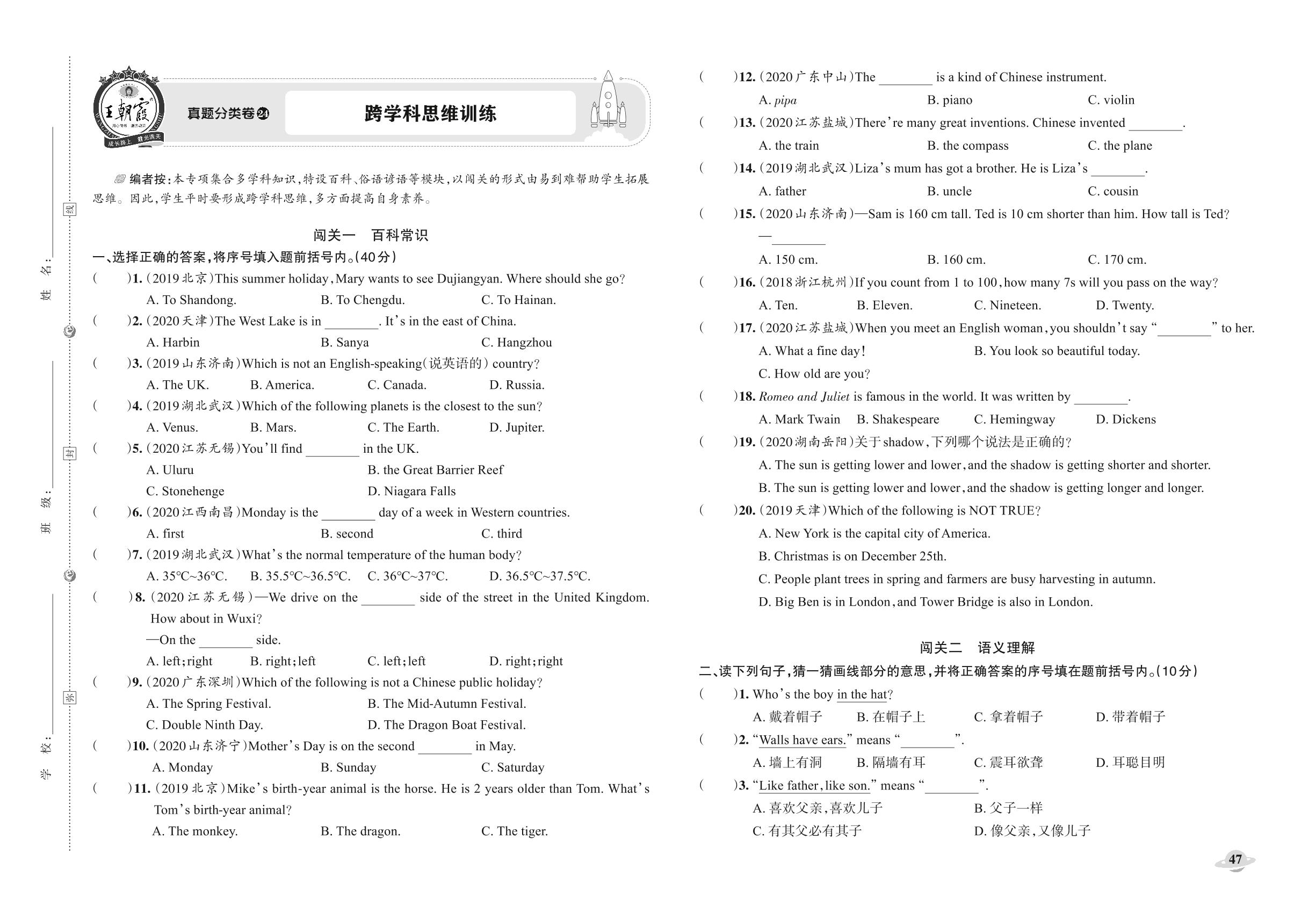 小升初英语真题分类·王朝霞精编卷——跨学科思维训练【24】