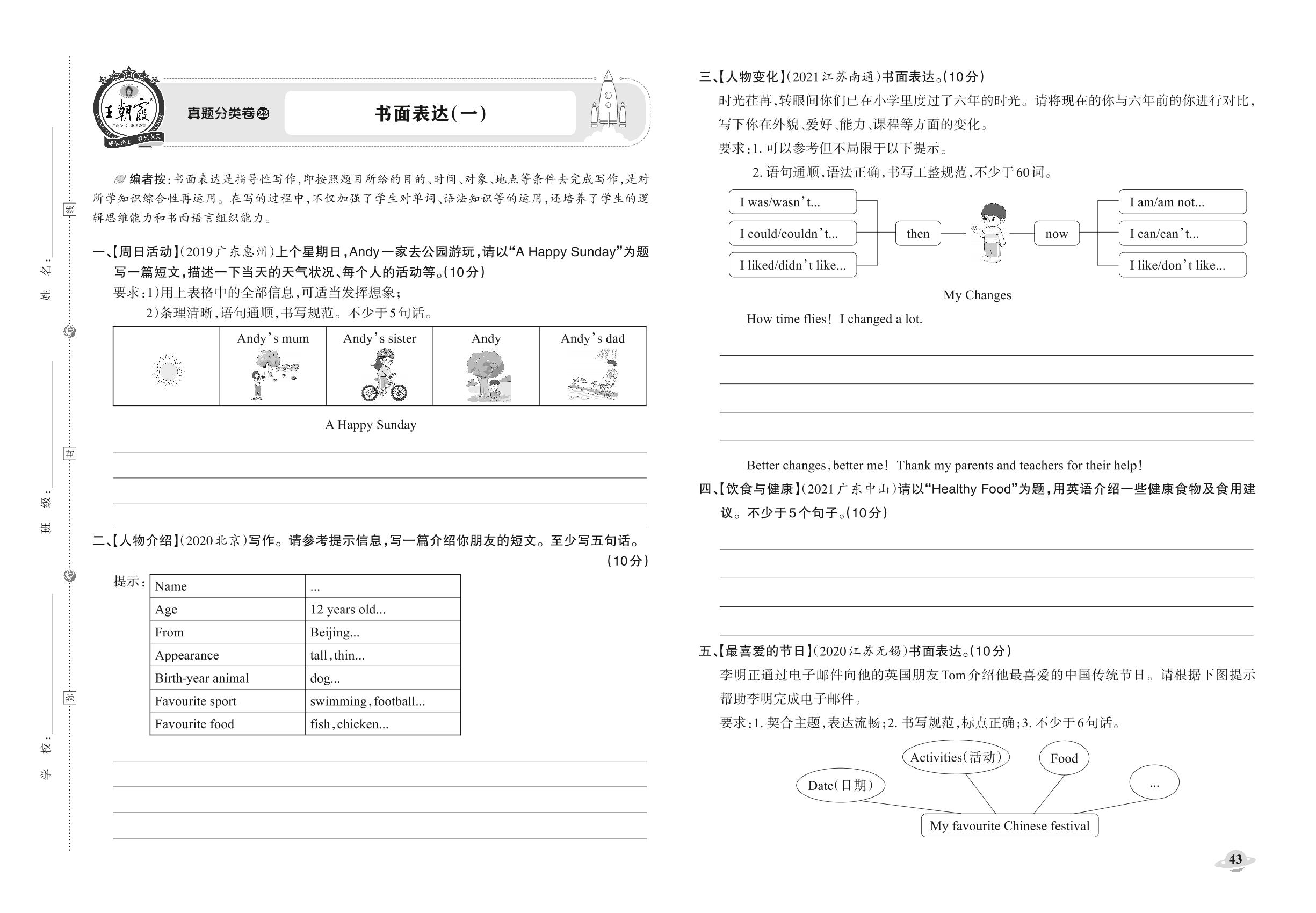 小升初英语真题分类·王朝霞精编卷——书面表达(一)【22】