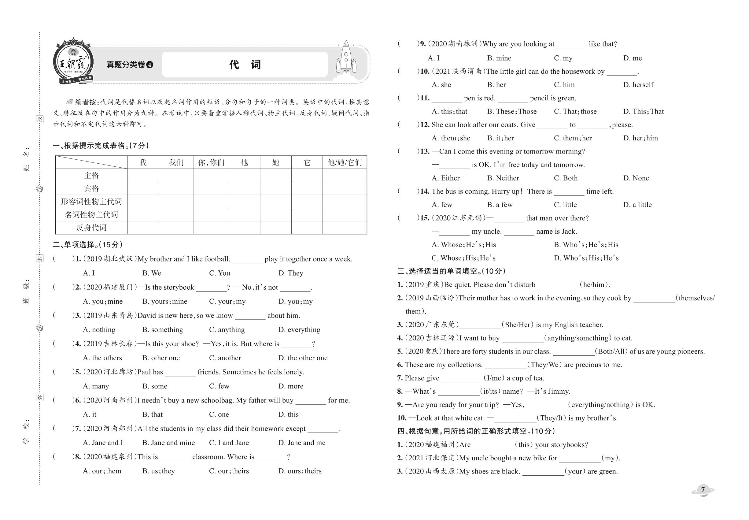 小升初英语真题分类·王朝霞精编卷——代词_R220316112104204【4】