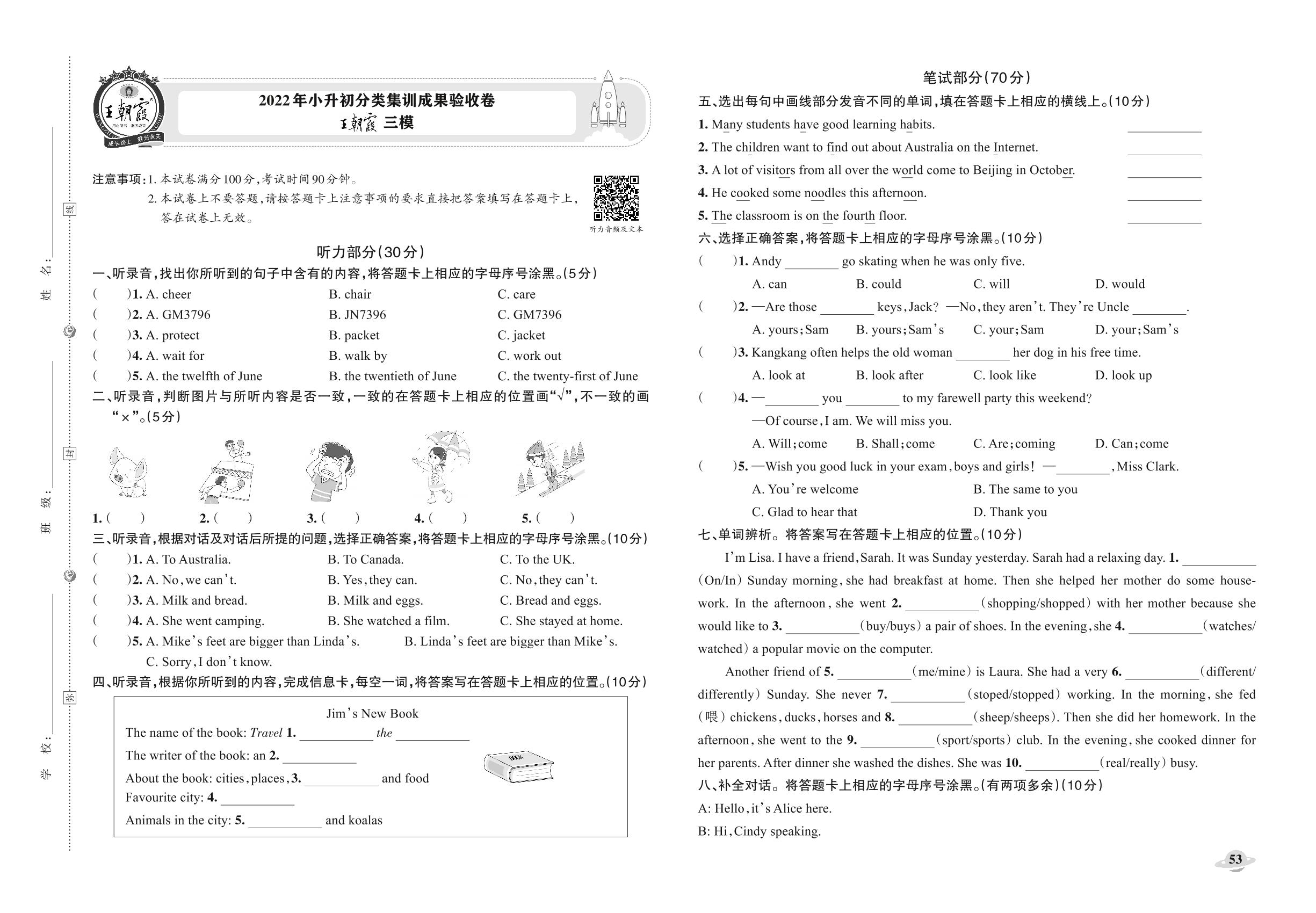 小升初英语分类集训成果验收卷·王朝霞模拟卷【3】