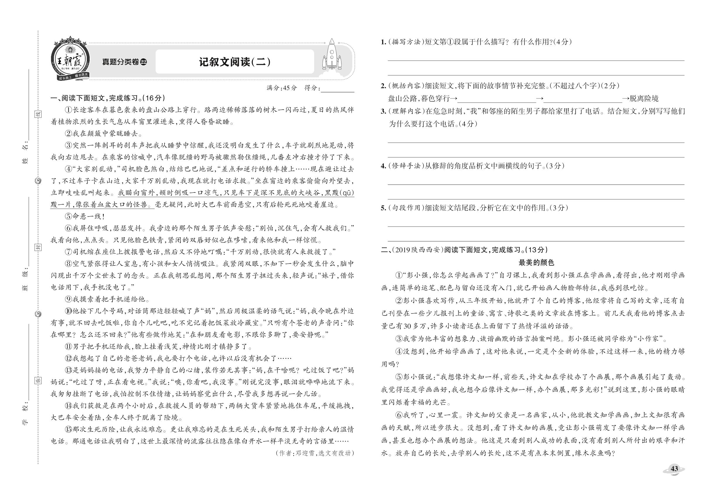 小升初语文真题分类·王朝霞精编卷——记叙文阅读(二)【22】