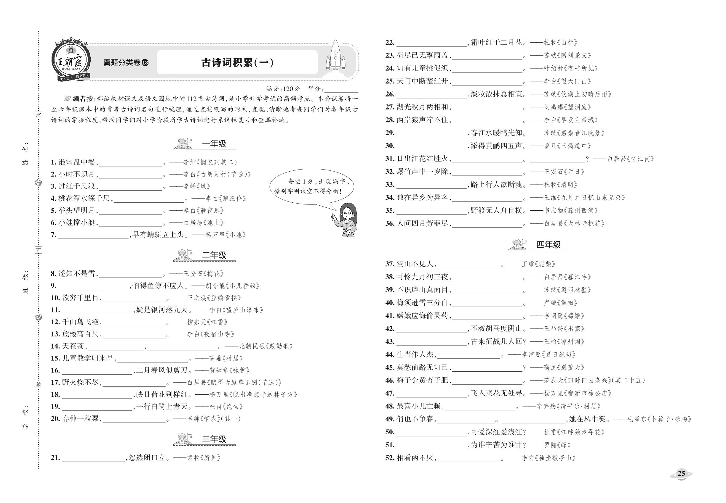 小升初语文真题分类·王朝霞精编卷——古诗词积累(一)【13】