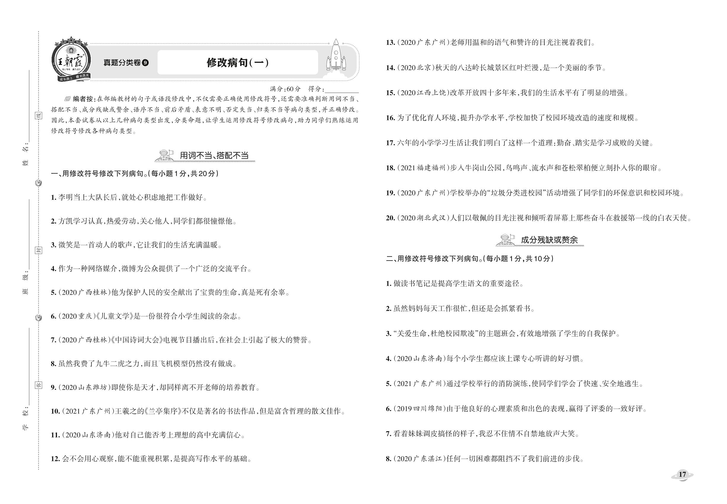 小升初语文真题分类·王朝霞精编卷——修改病句(一)【9】
