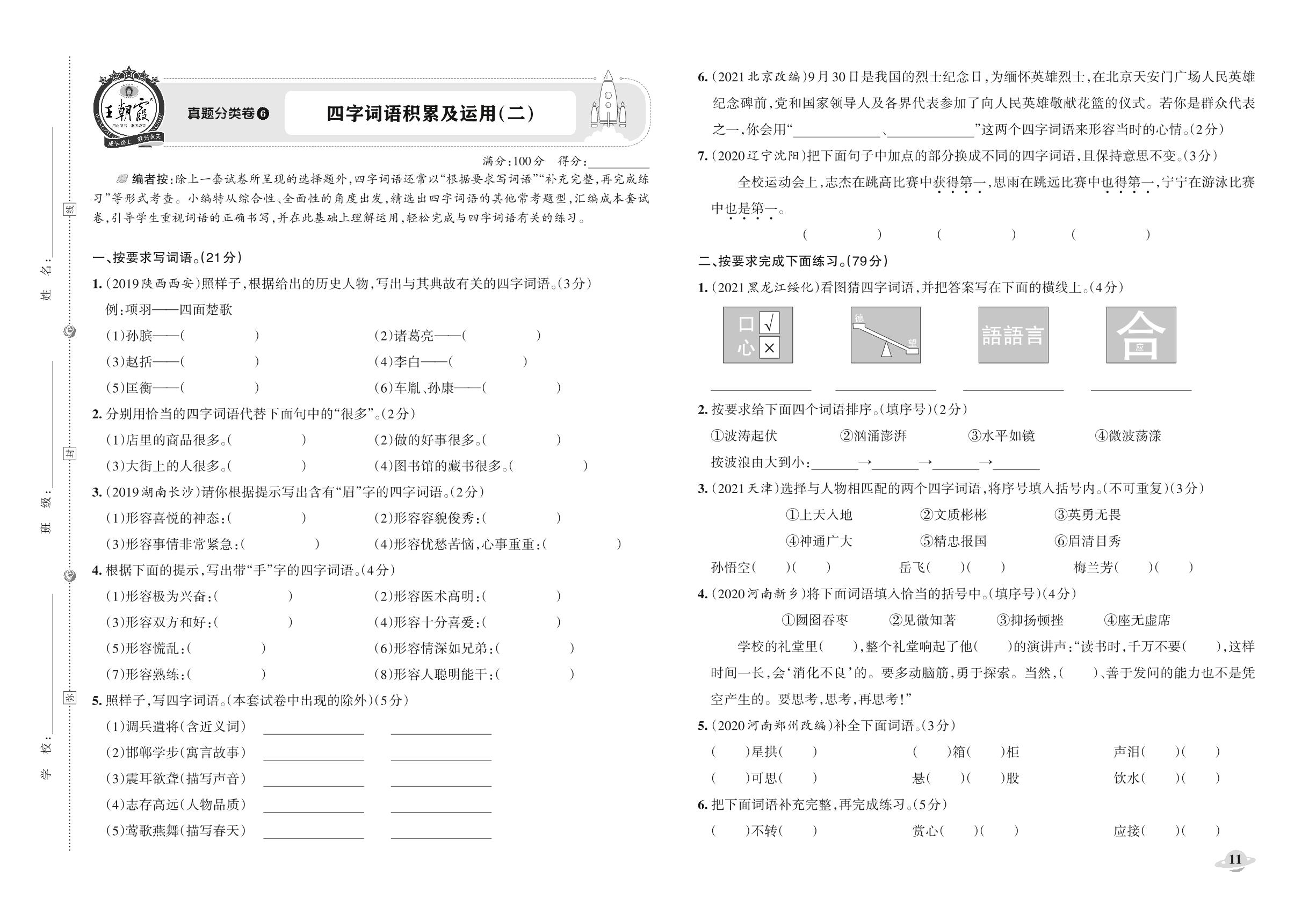 小升初语文真题分类·王朝霞精编卷——四字词语积累及运用(二)【6】