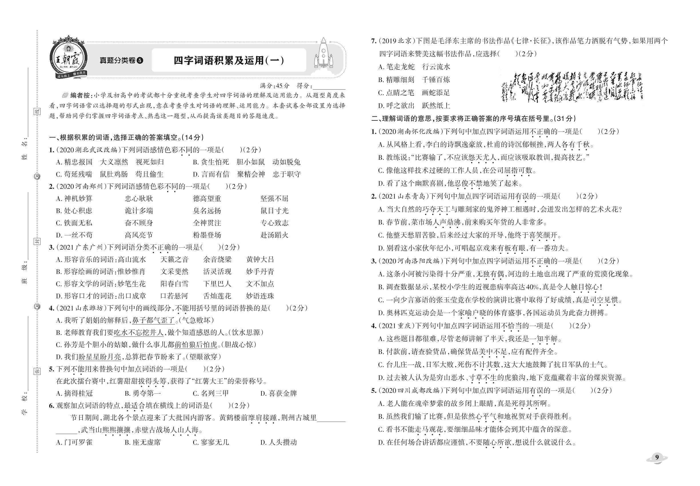 小升初语文真题分类·王朝霞精编卷——四字词语积累及运用(一)【5】