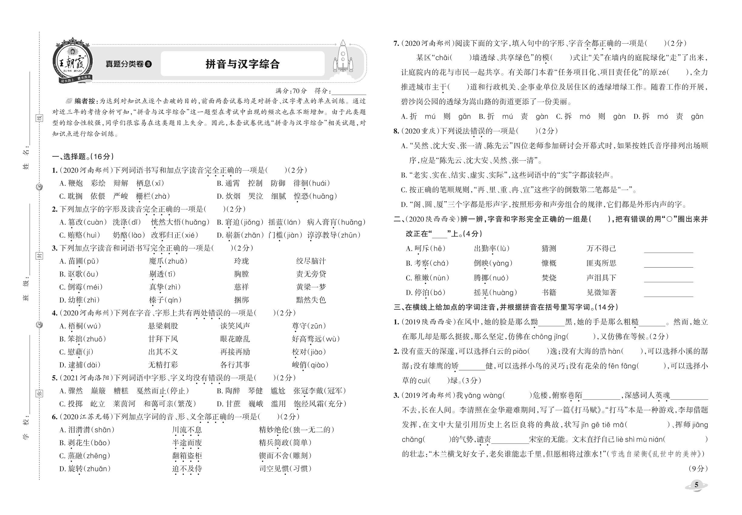 小升初语文真题分类·王朝霞精编卷——拼音与汉字综合【3】