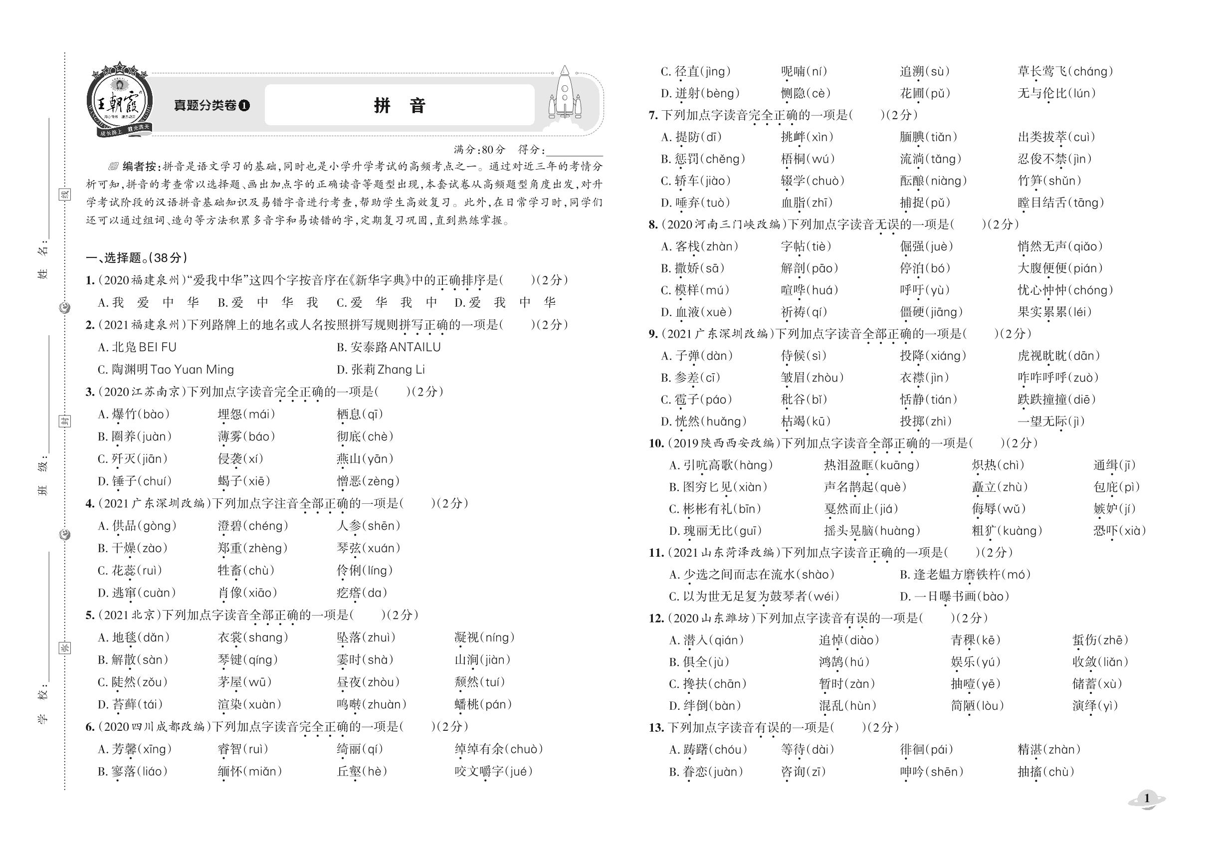 小升初语文真题分类·王朝霞精编卷——拼音【1】
