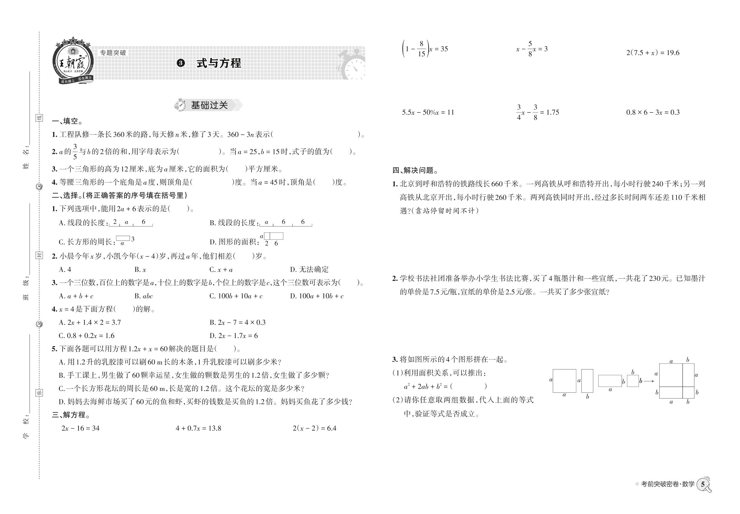 小升初数学·王朝霞专题归类突破密卷——式与方程【3】