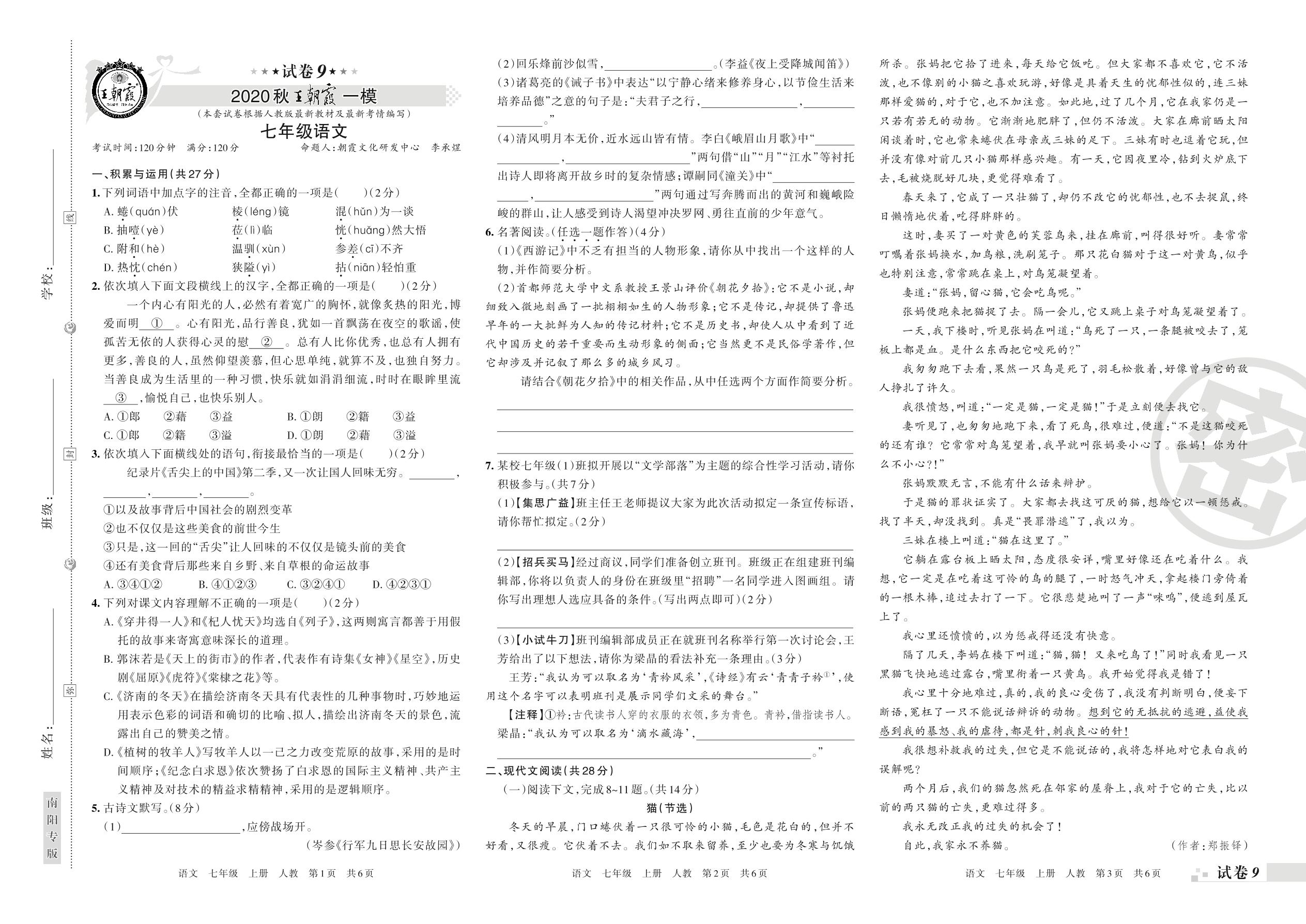 王朝霞期末模拟卷七年级上册语文(人教版)_R2108025732【9】
