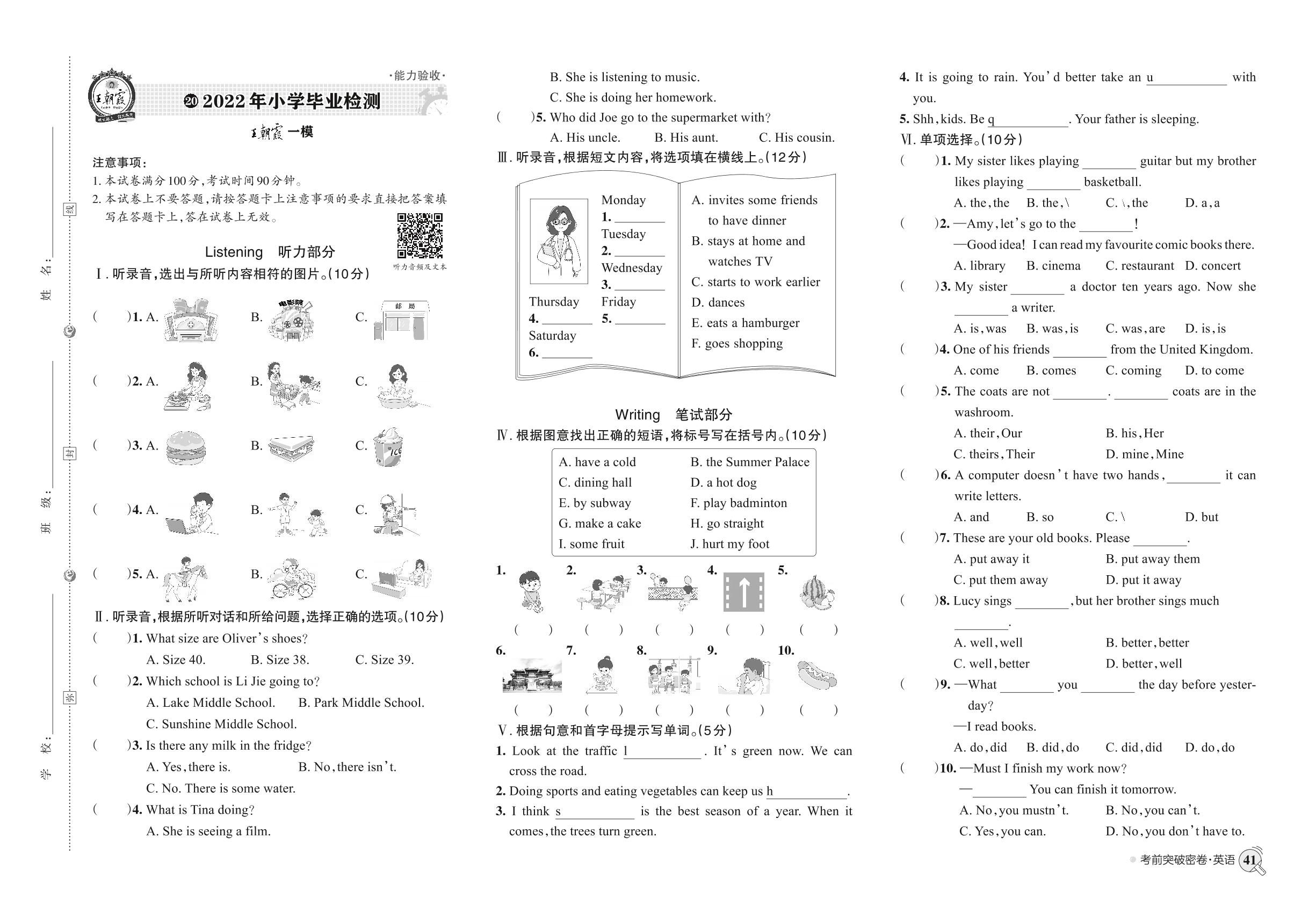 小升初英语小学毕业检测·王朝霞模拟卷_R220316144818815【1】