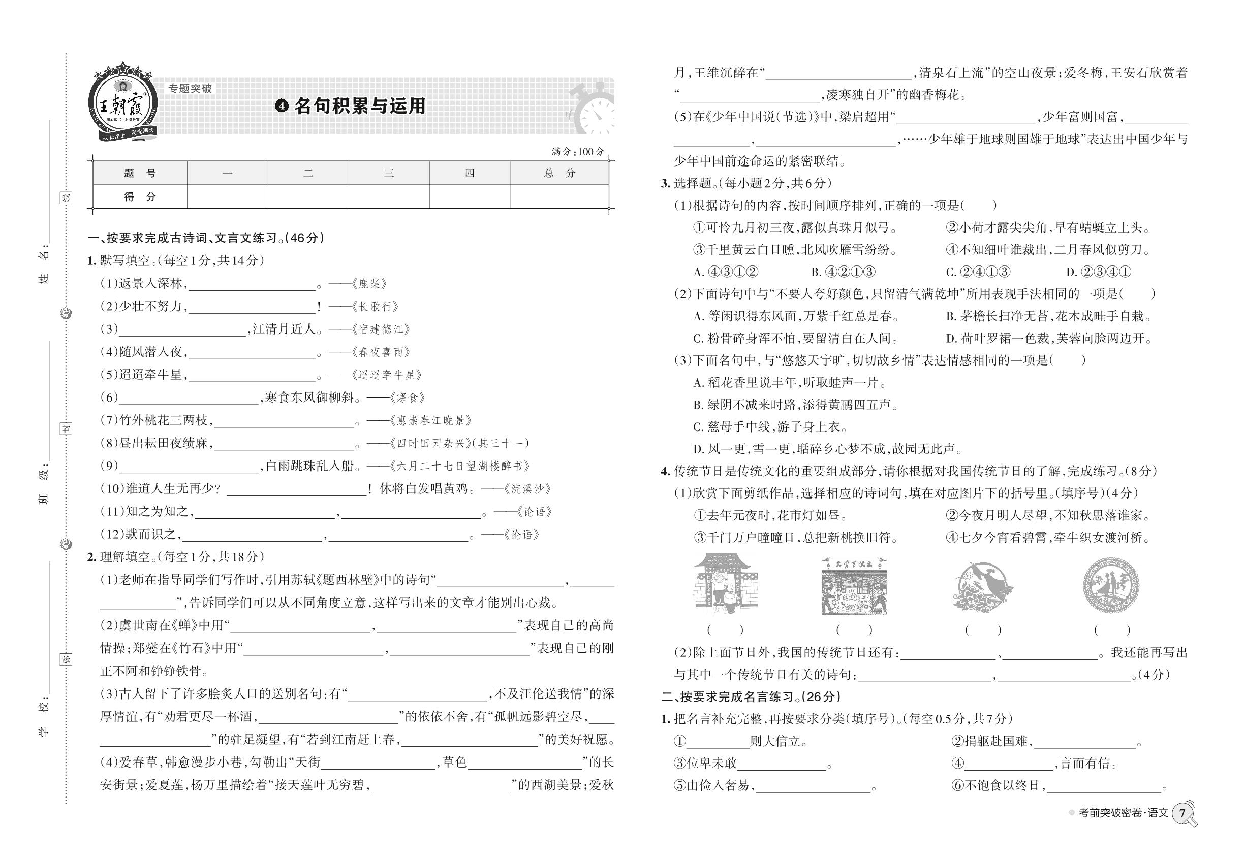 小升初语文·王朝霞专题归类突破密卷——名句积累与运用 【4】