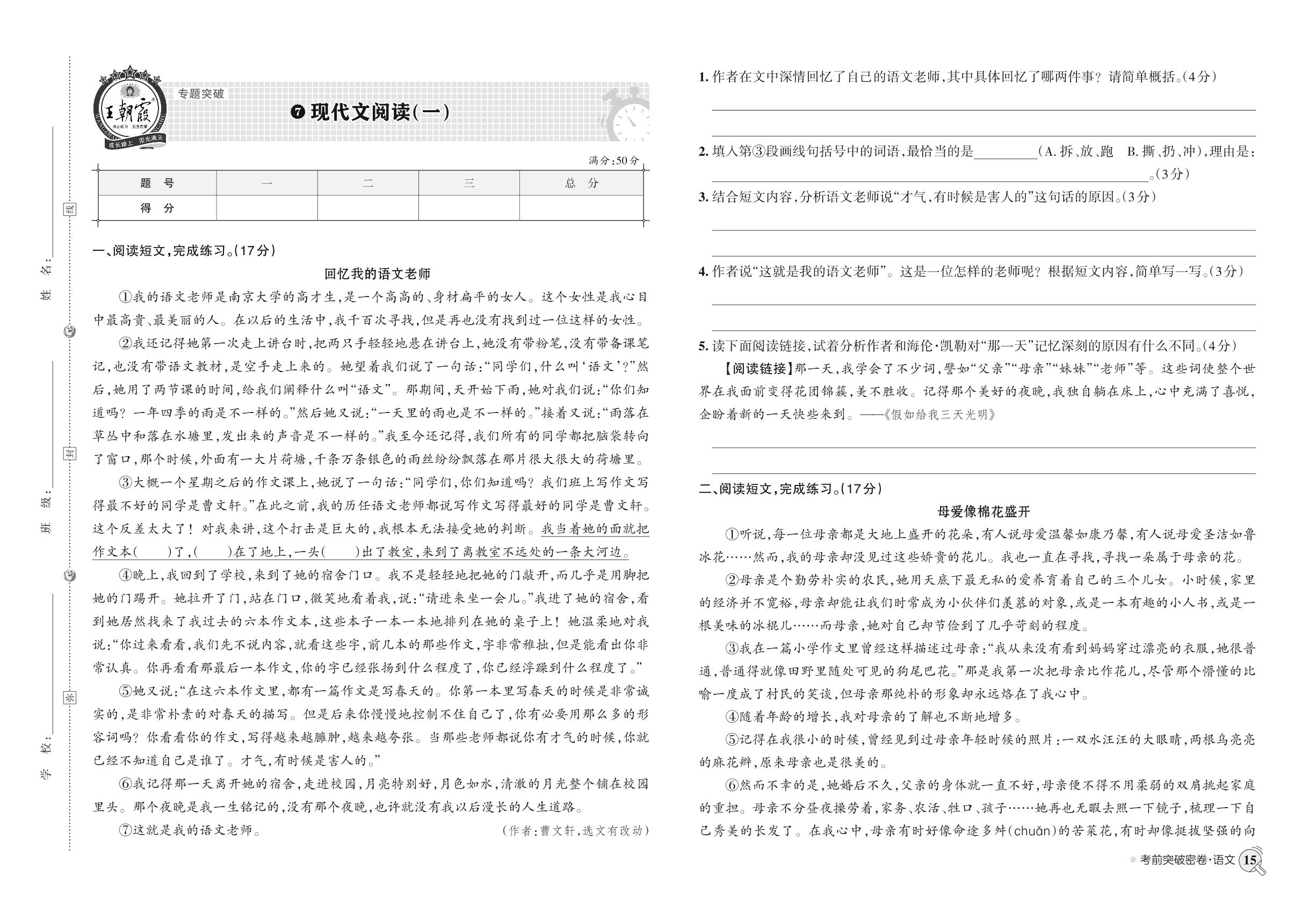 小升初语文·王朝霞专题归类突破密卷——现代文阅读(一)【7】