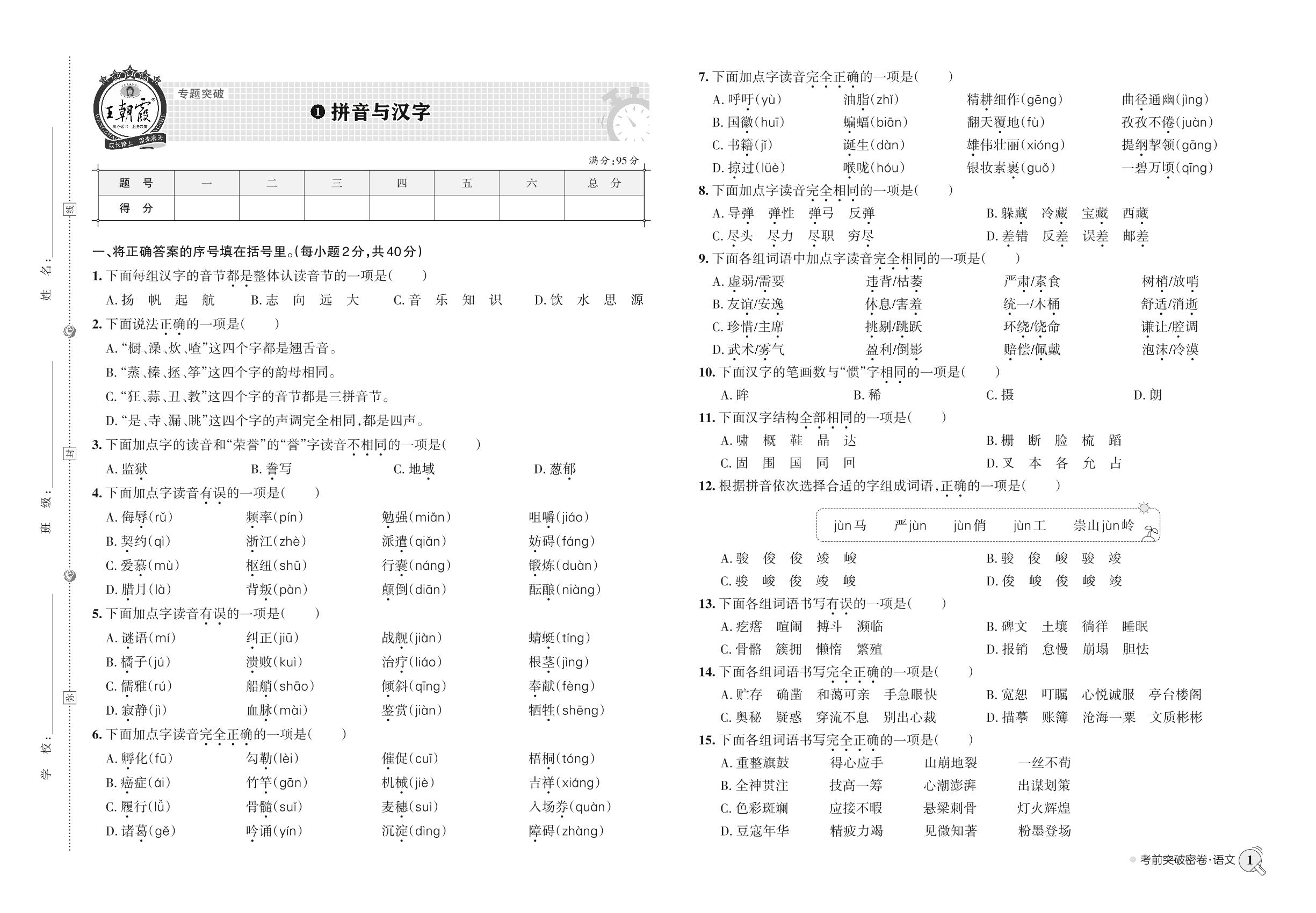 小升初语文·王朝霞专题归类突破密卷——拼音与汉字【1】