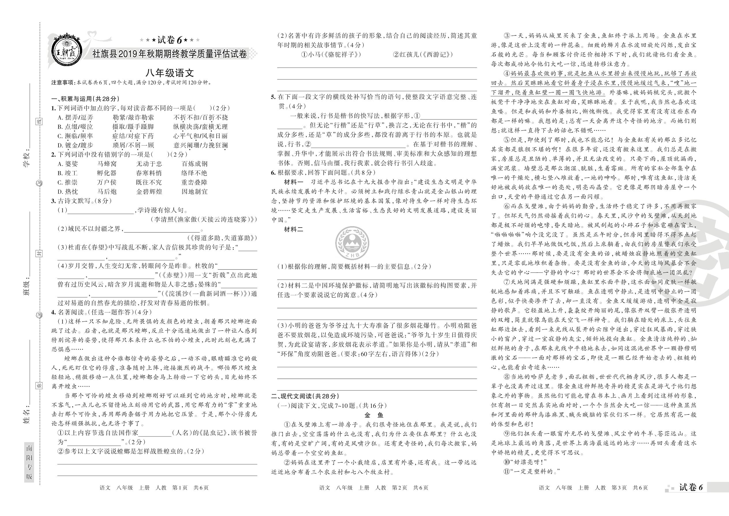 2019-2020学年第一学期南阳市社旗县八年级语文试卷(人教版)【6】