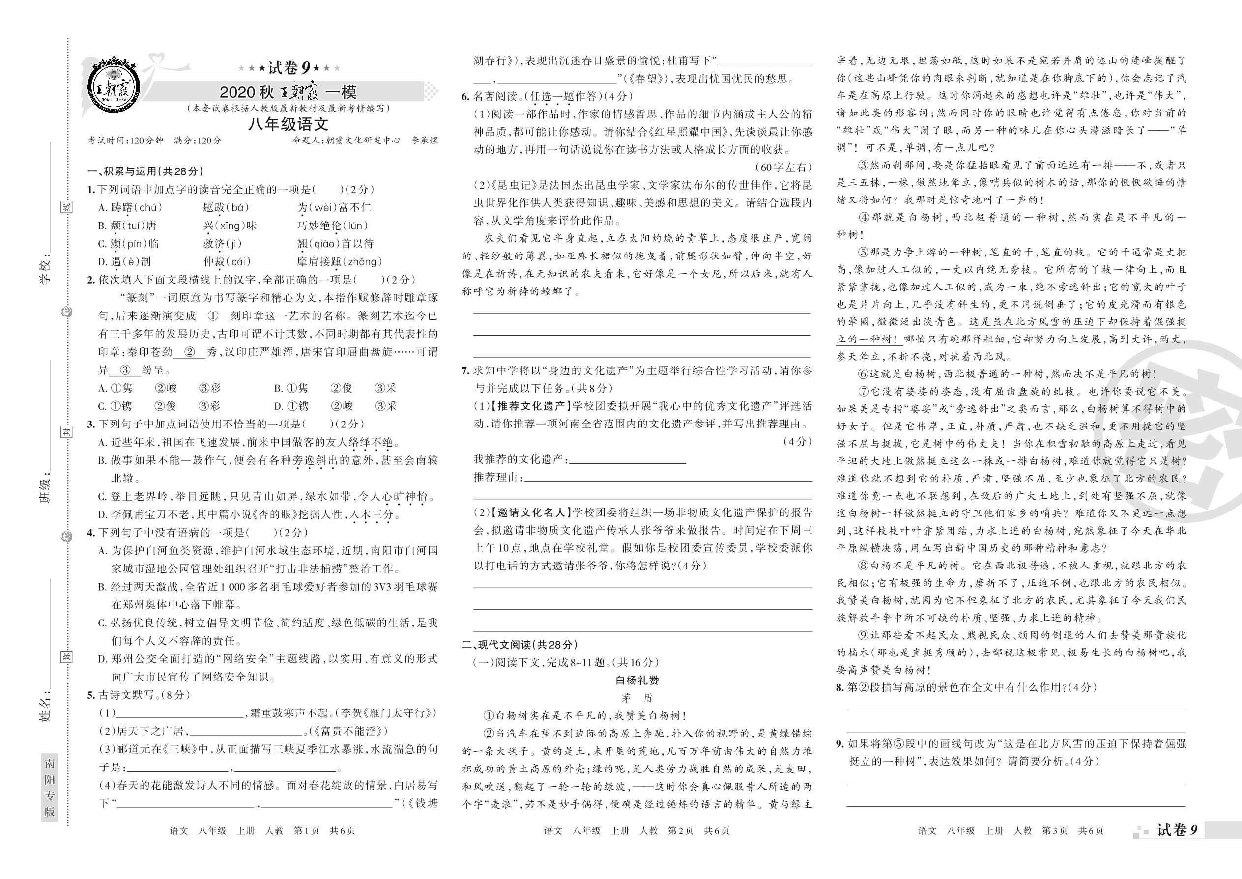 王朝霞期末模拟卷八年级上册语文(人教版)_R21080210242【9】
