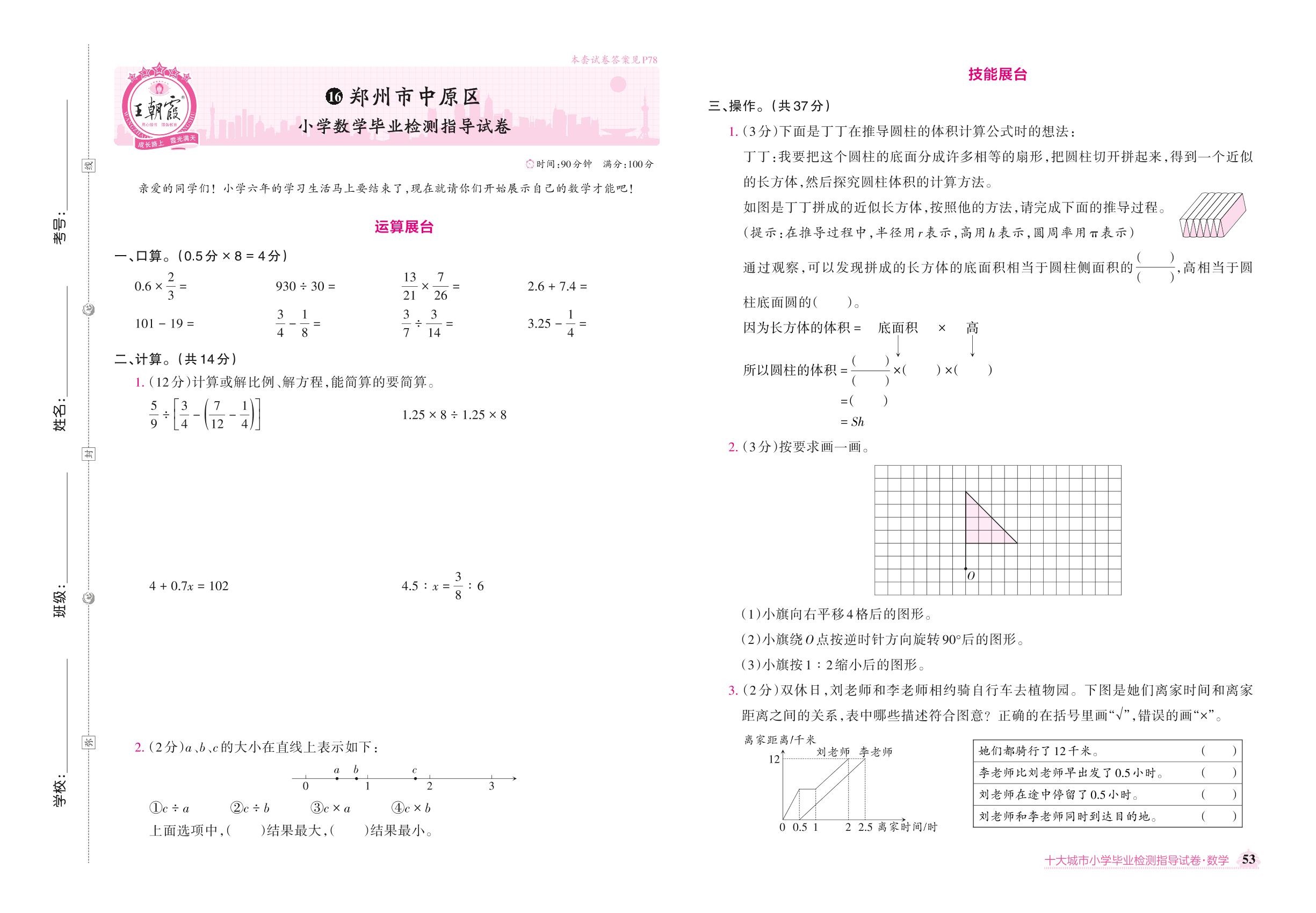 郑州市中原区小学数学毕业检测指导试卷【16】
