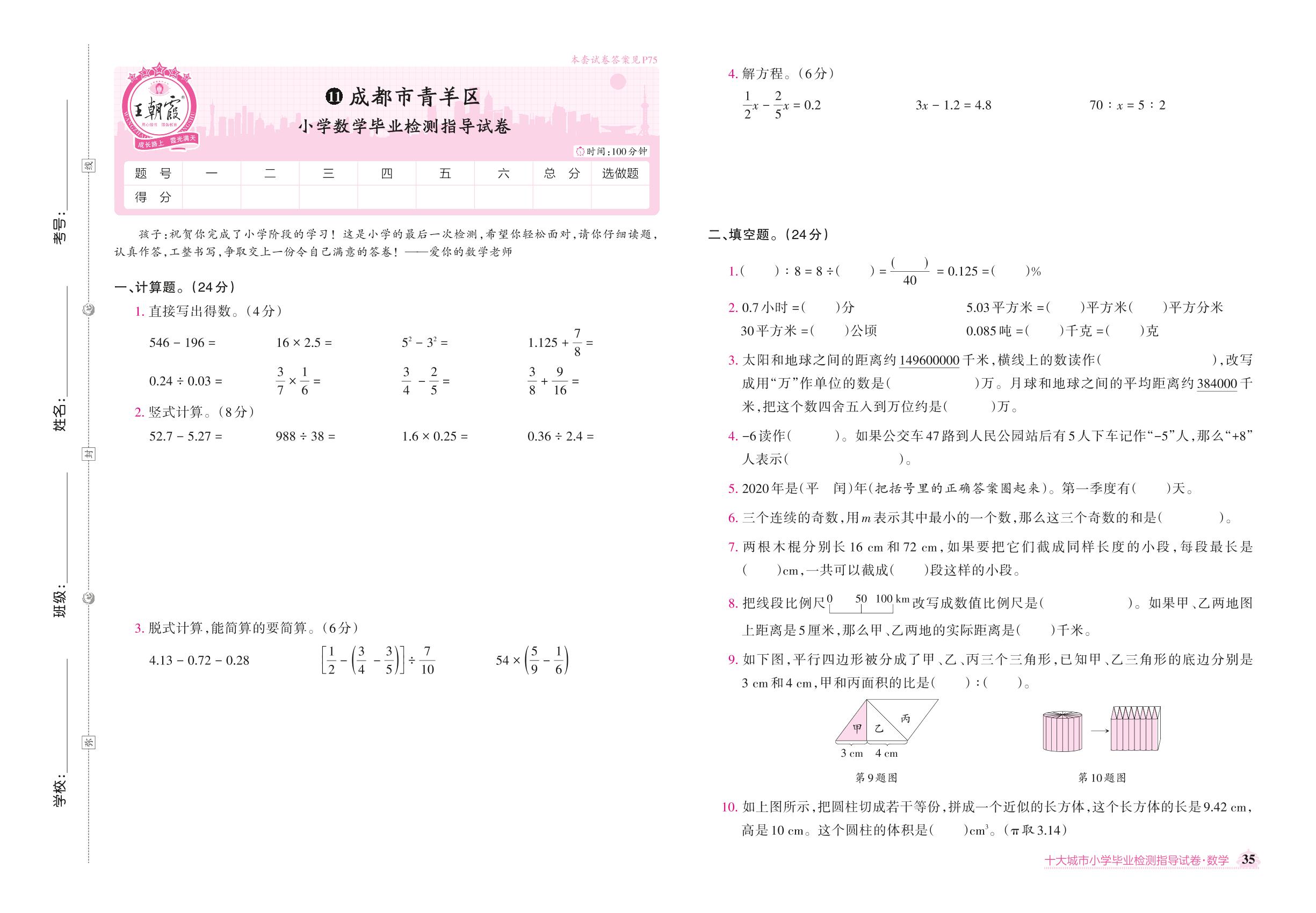 成都市青羊区小学数学毕业检测指导试卷【11】