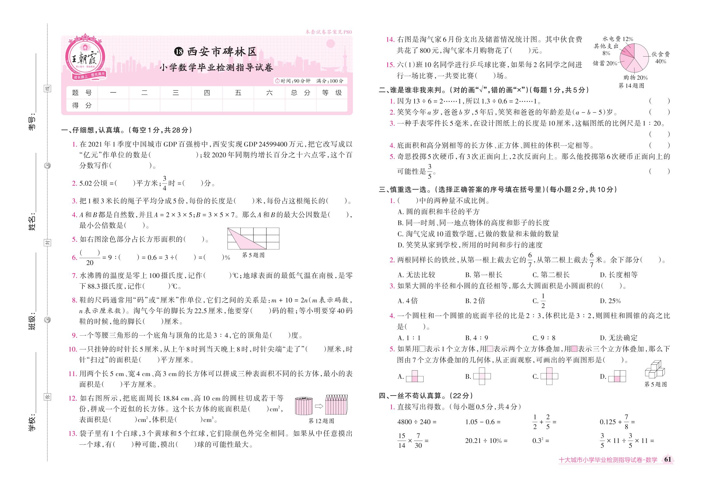 西安市碑林区小学数学毕业检测指导试卷【18】