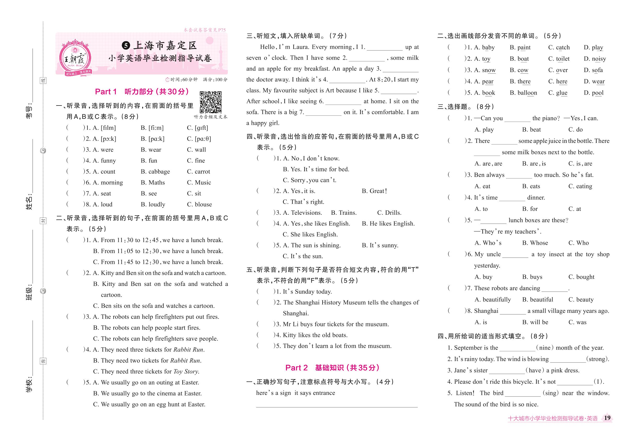 上海市嘉定区小学英语毕业检测指导试卷【5】