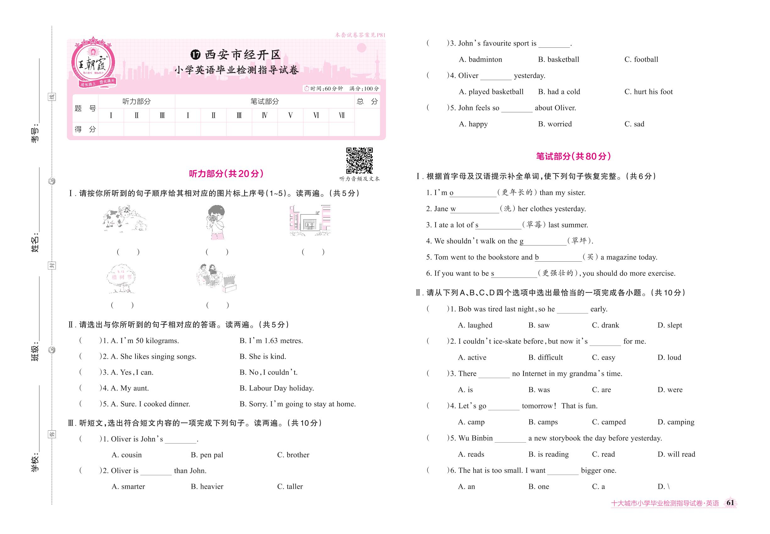 西安市经开区小学英语毕业检测指导试卷【17】