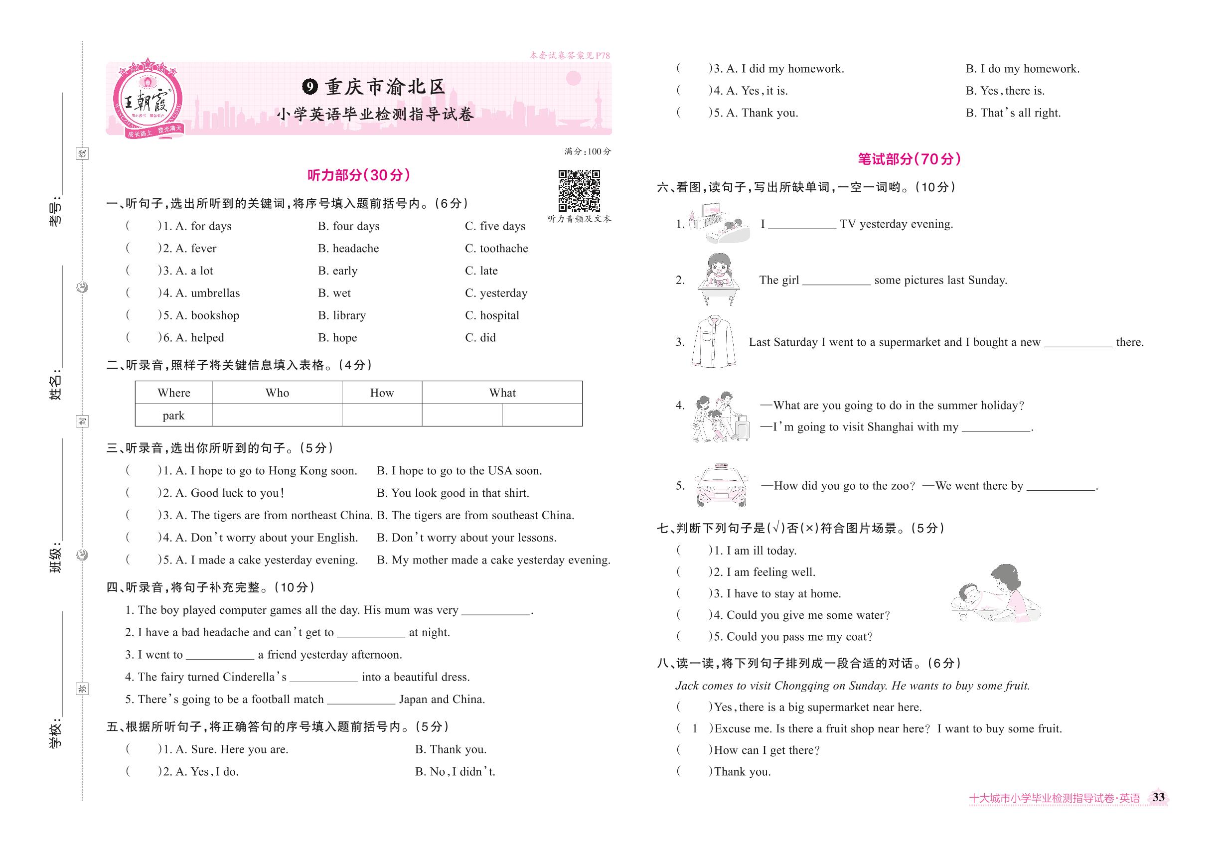 重庆市渝北区小学英语毕业检测指导试卷【9】