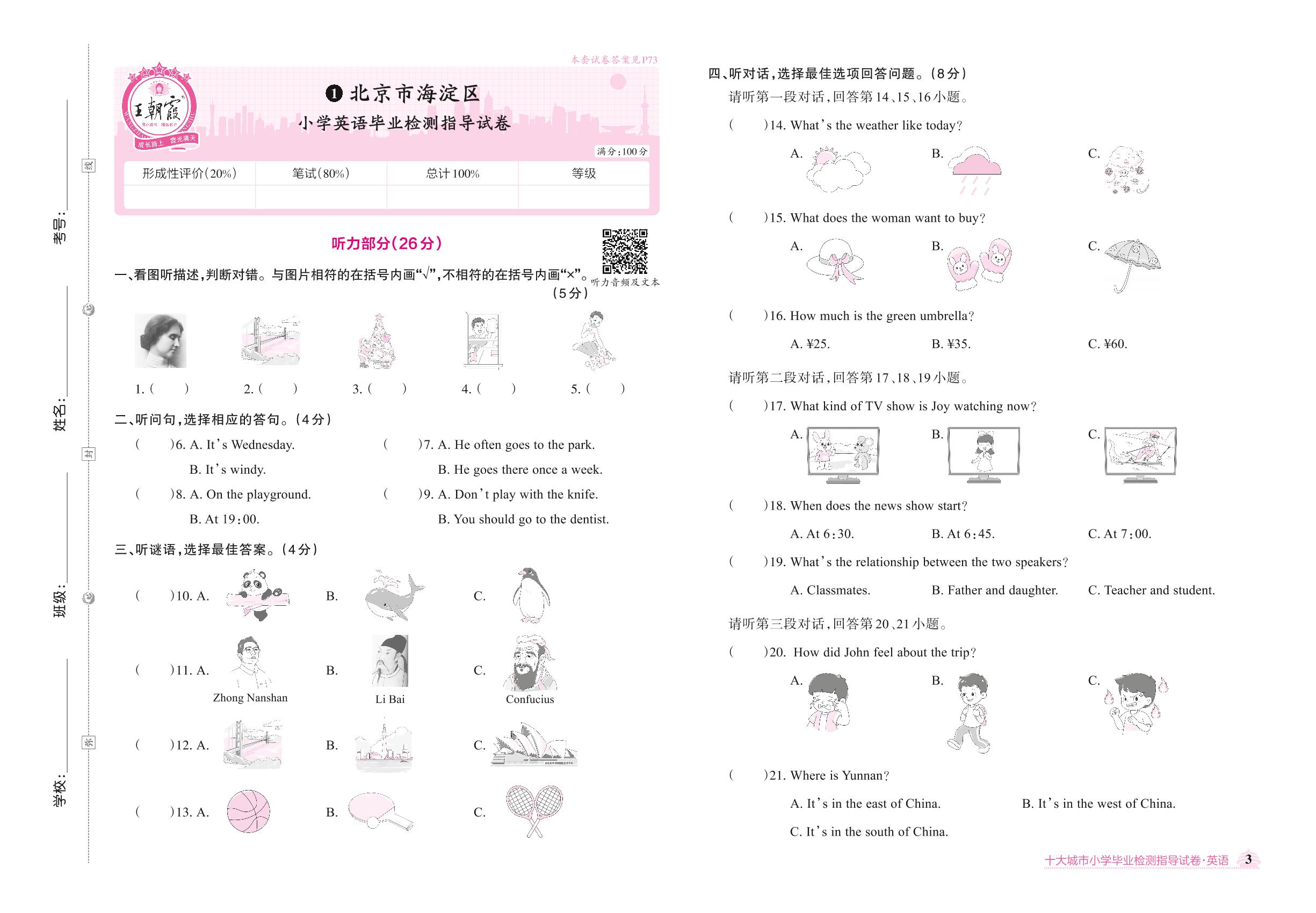 北京市海淀区小学英语毕业检测指导试卷【1】