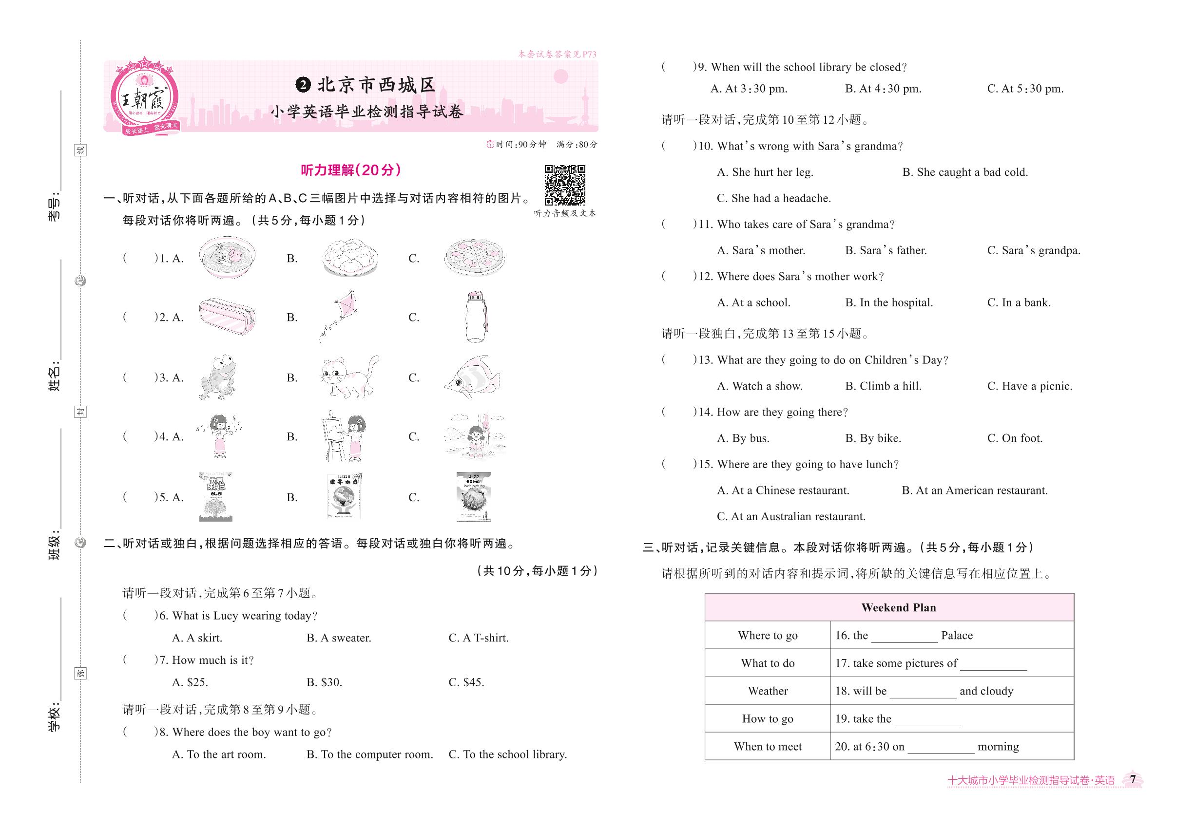 北京市西城区小学英语毕业检测指导试卷【2】