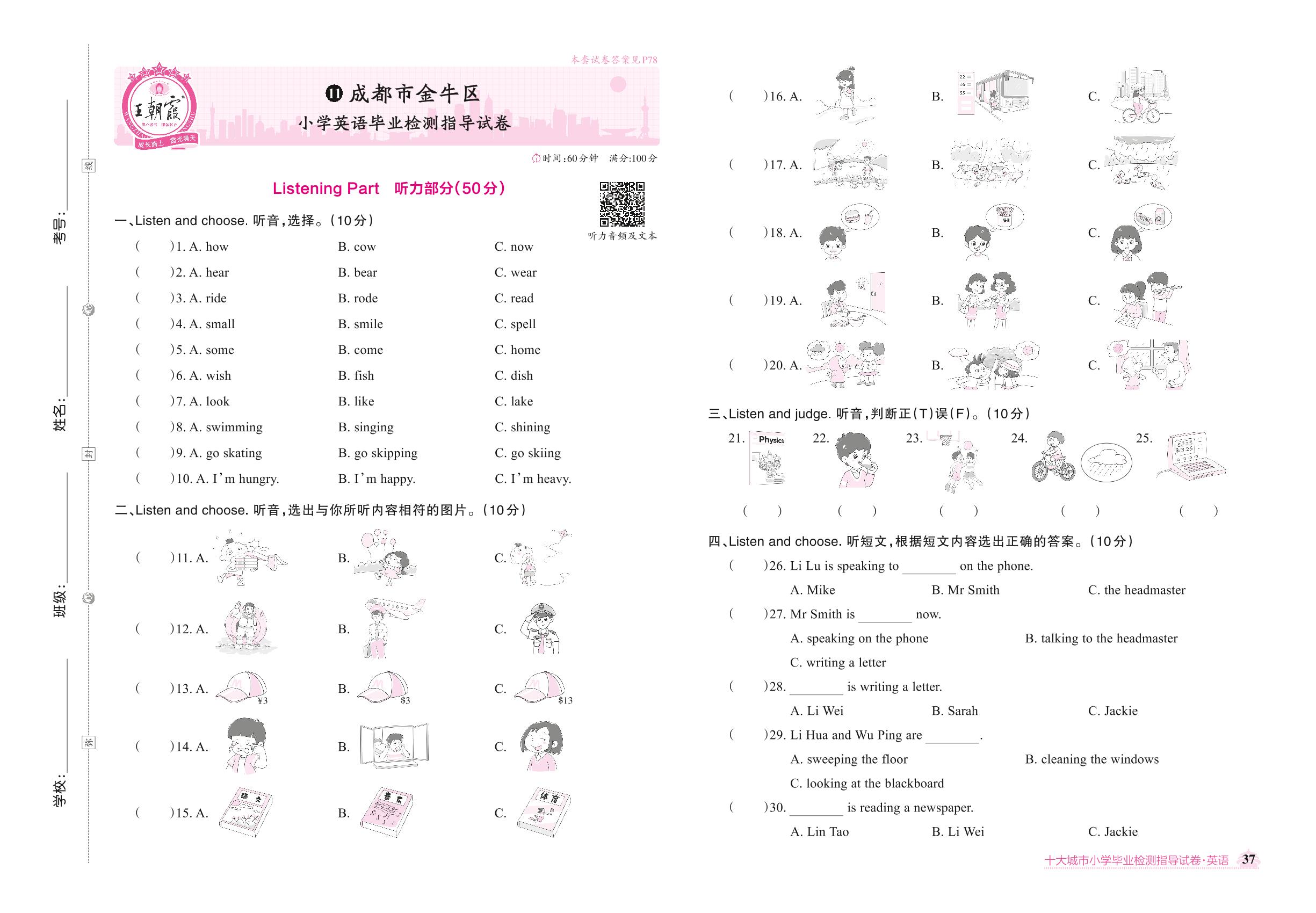 成都市金牛区小学英语毕业检测指导试卷【11】