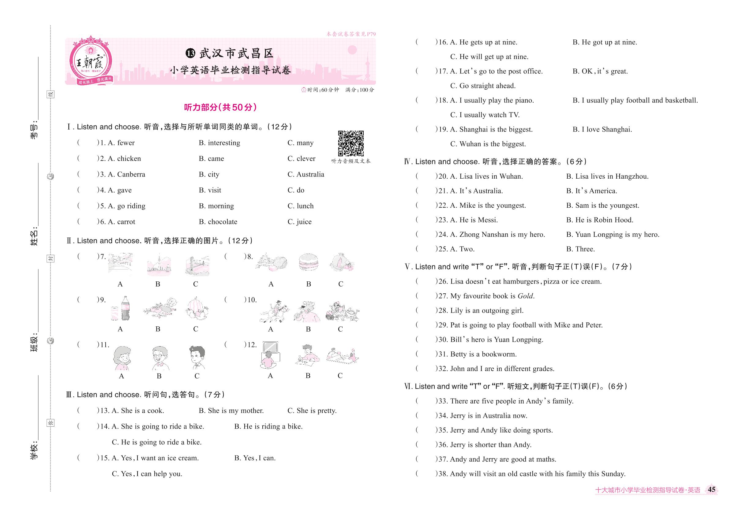 武汉市武昌区小学英语毕业检测指导试卷【13】