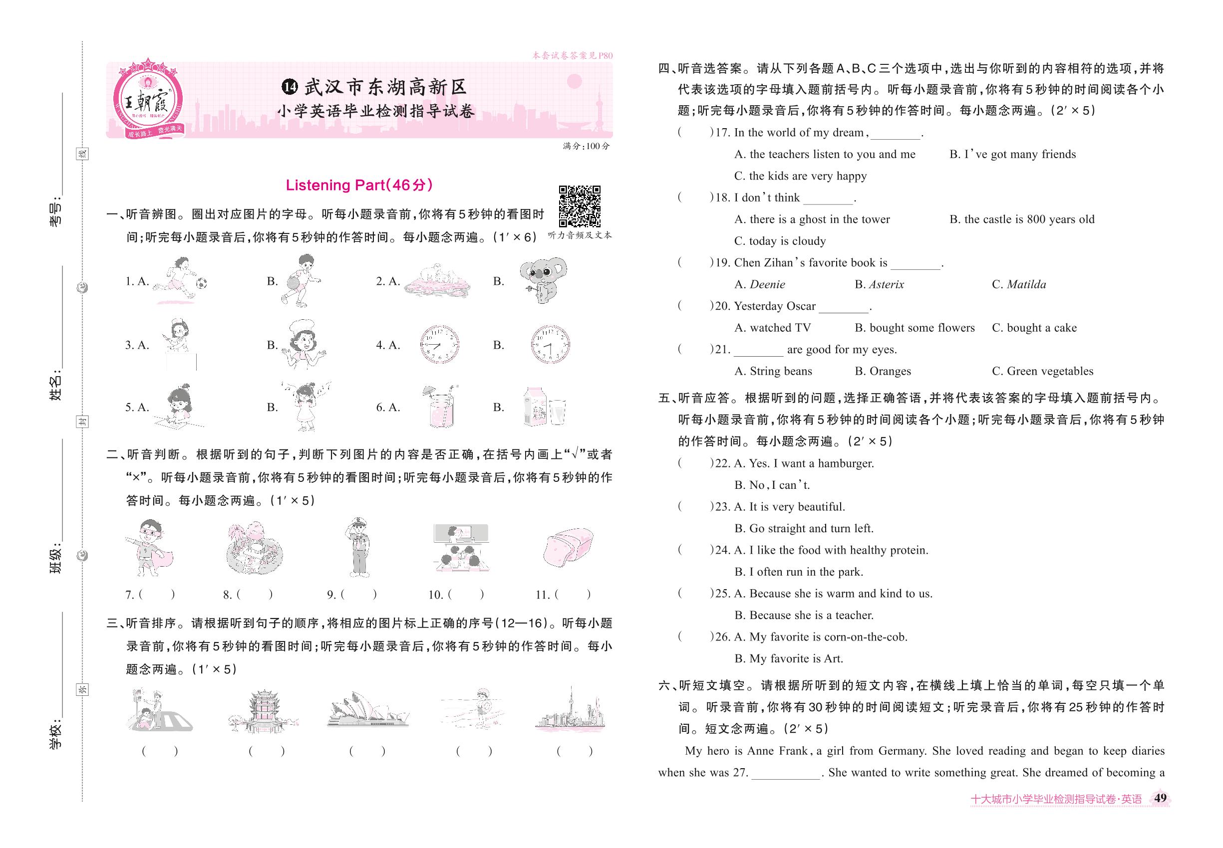 武汉市东湖高新区小学英语毕业检测指导试卷【14】