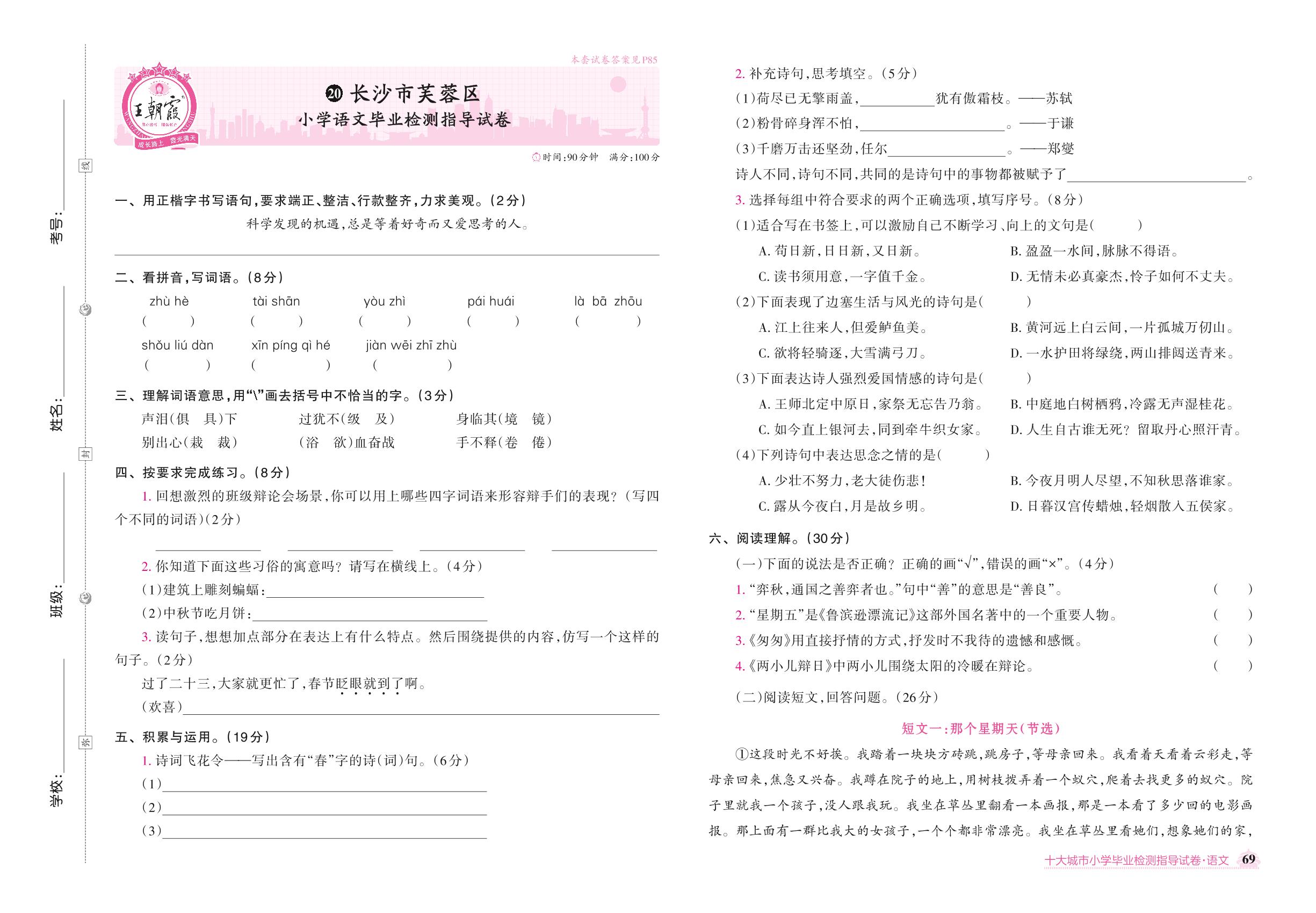 长沙市芙蓉区小学语文毕业检测指导试卷【20】