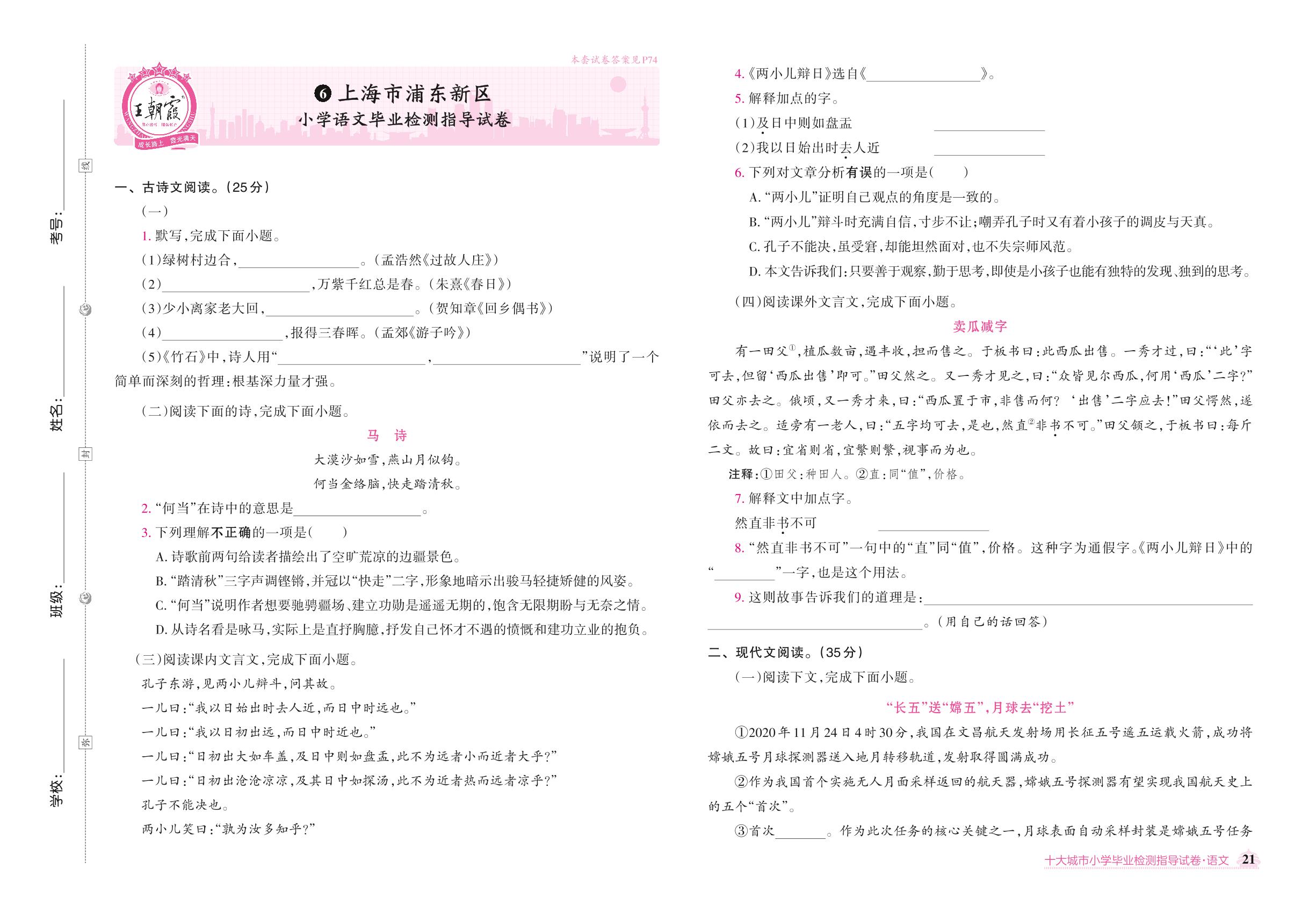 上海市浦东新区小学语文毕业检测指导试卷【6】
