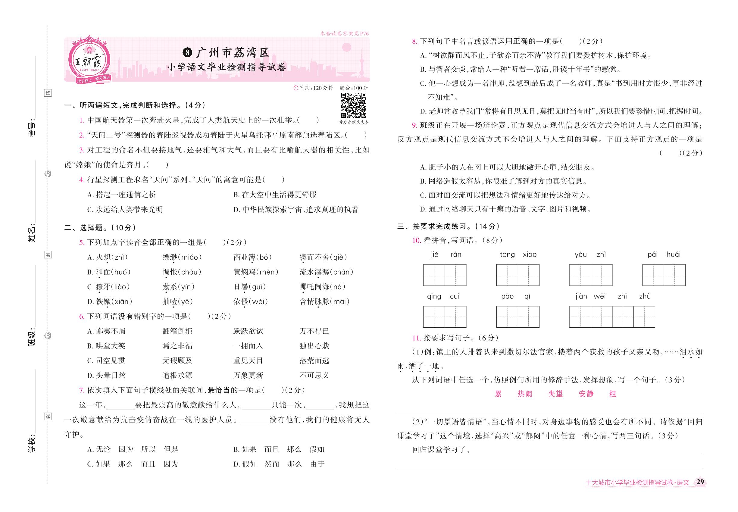 广州市荔湾区小学语文毕业检测指导试卷【8】