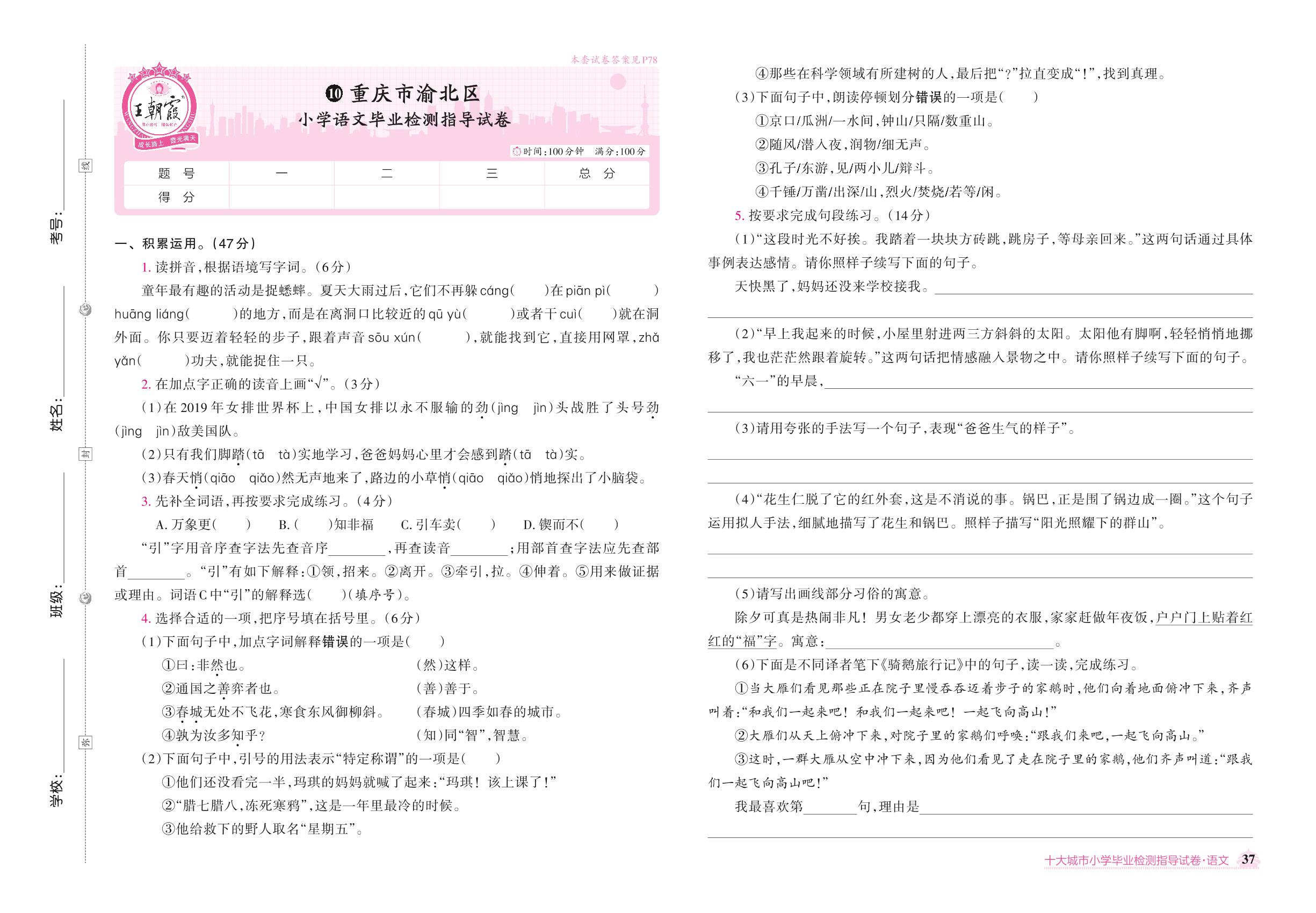 重庆市渝北区小学语文毕业检测指导试卷【10】