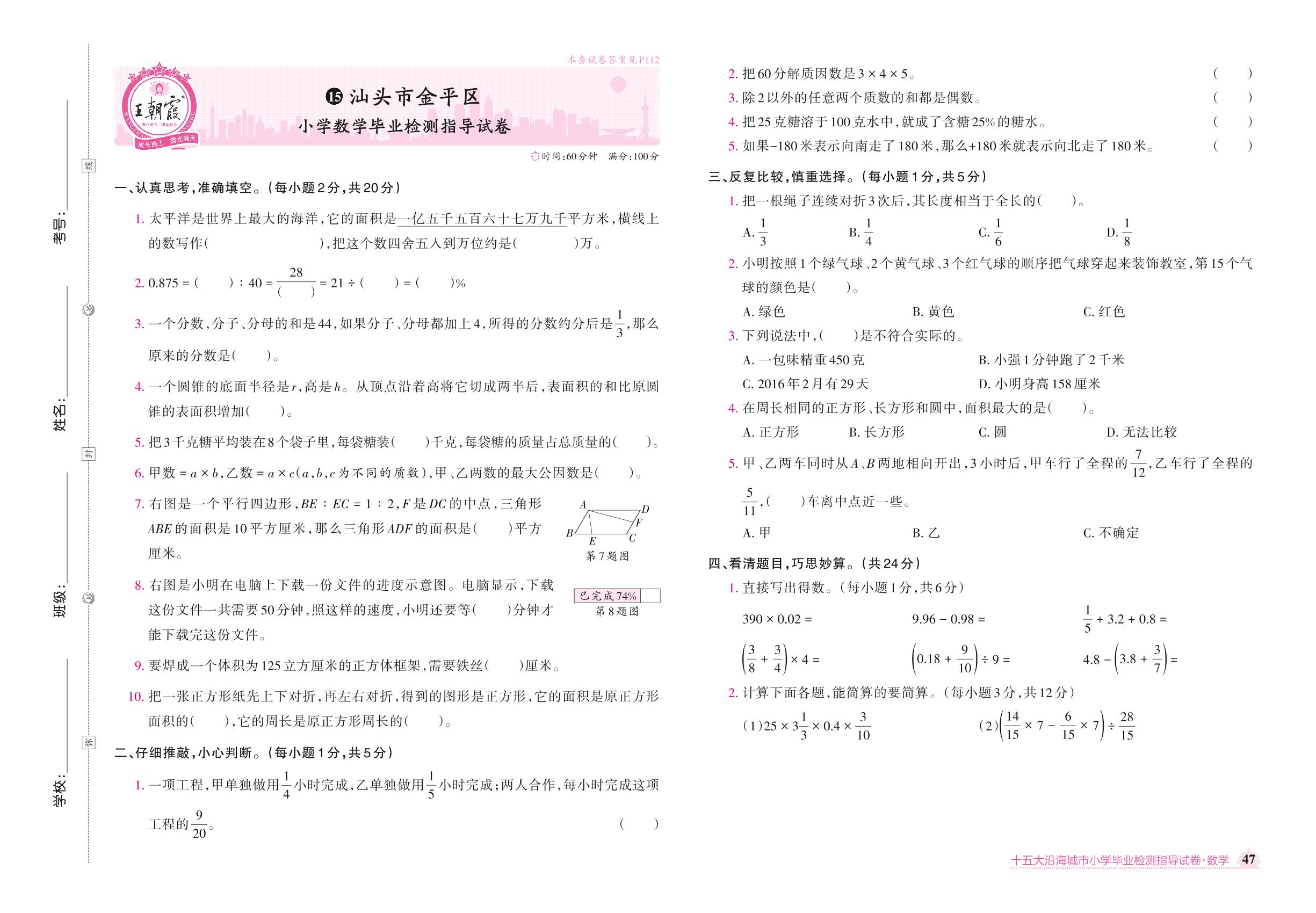 汕头市金平区小学数学毕业检测指导试卷【15】