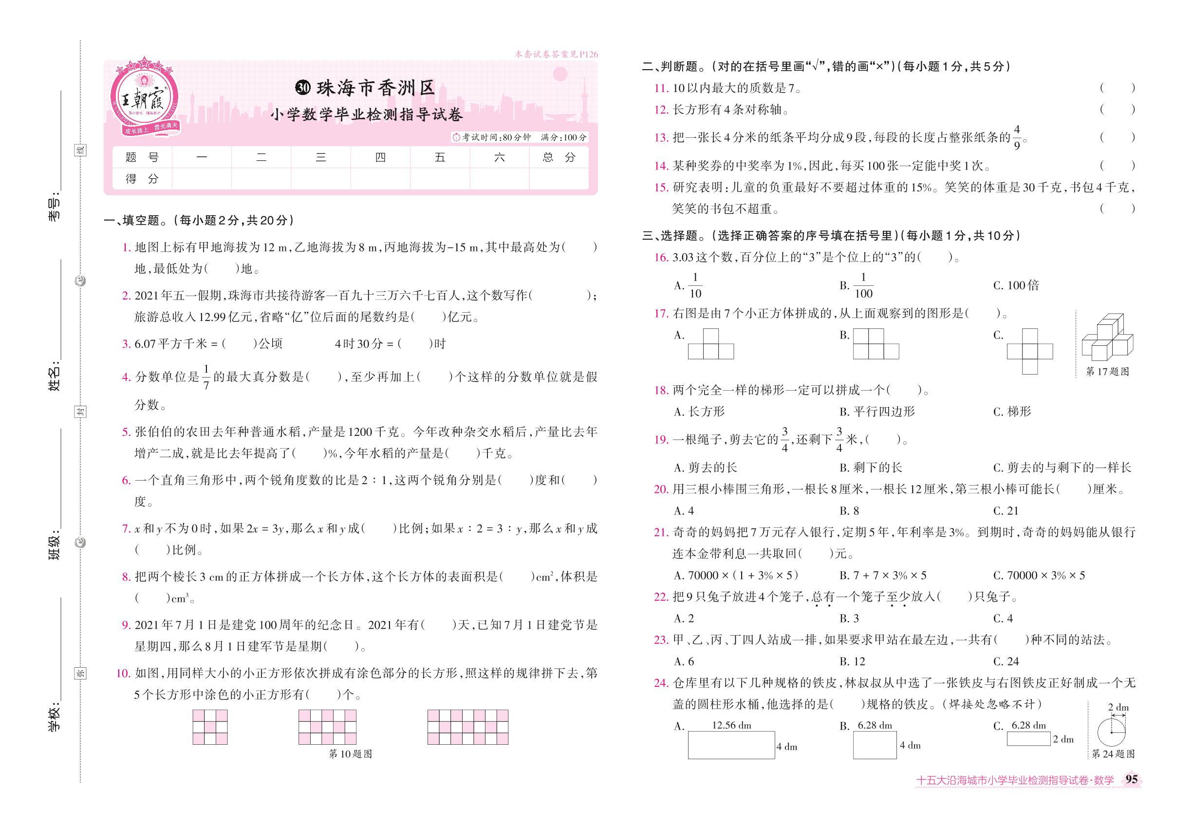 珠海市香洲区小学数学毕业检测指导试卷【30】