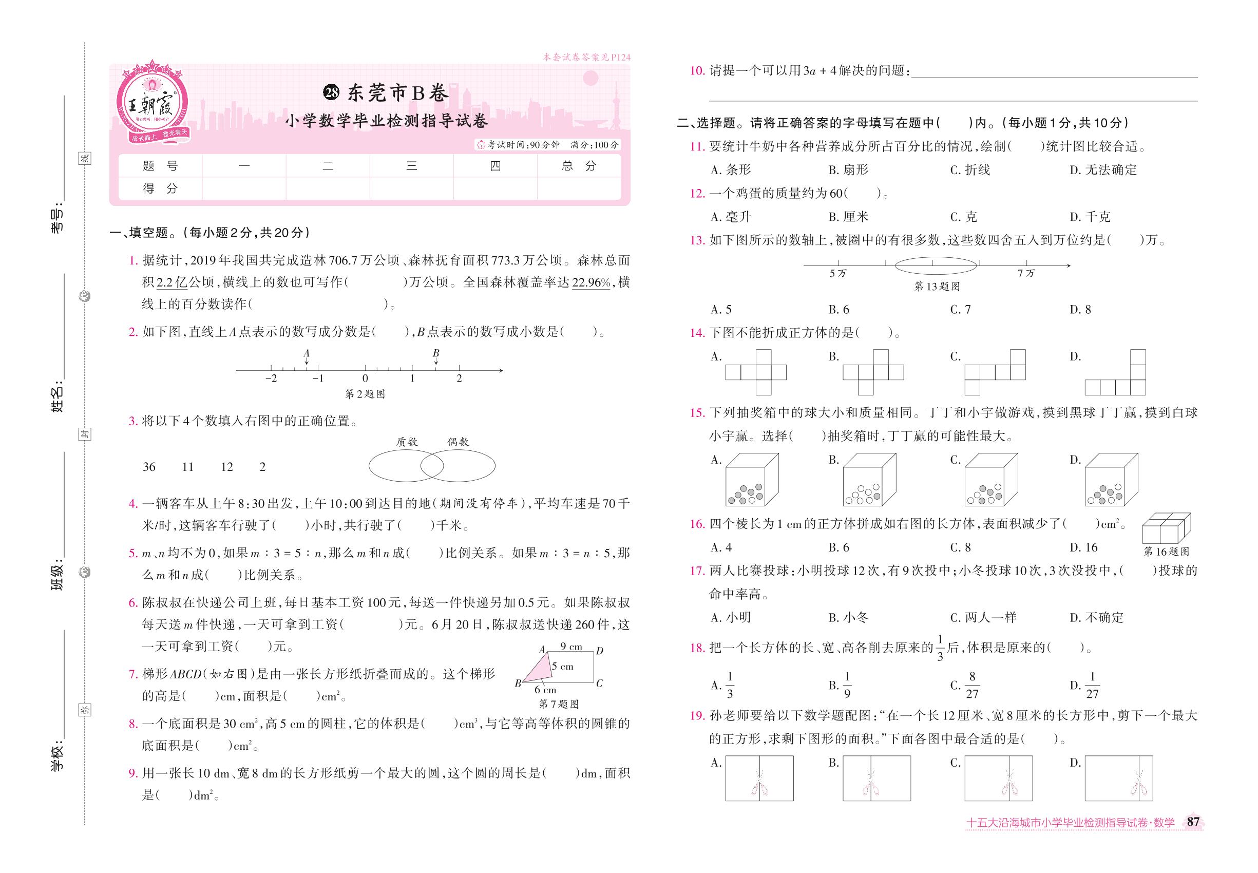 东莞市B卷小学数学毕业检测指导试卷【28】