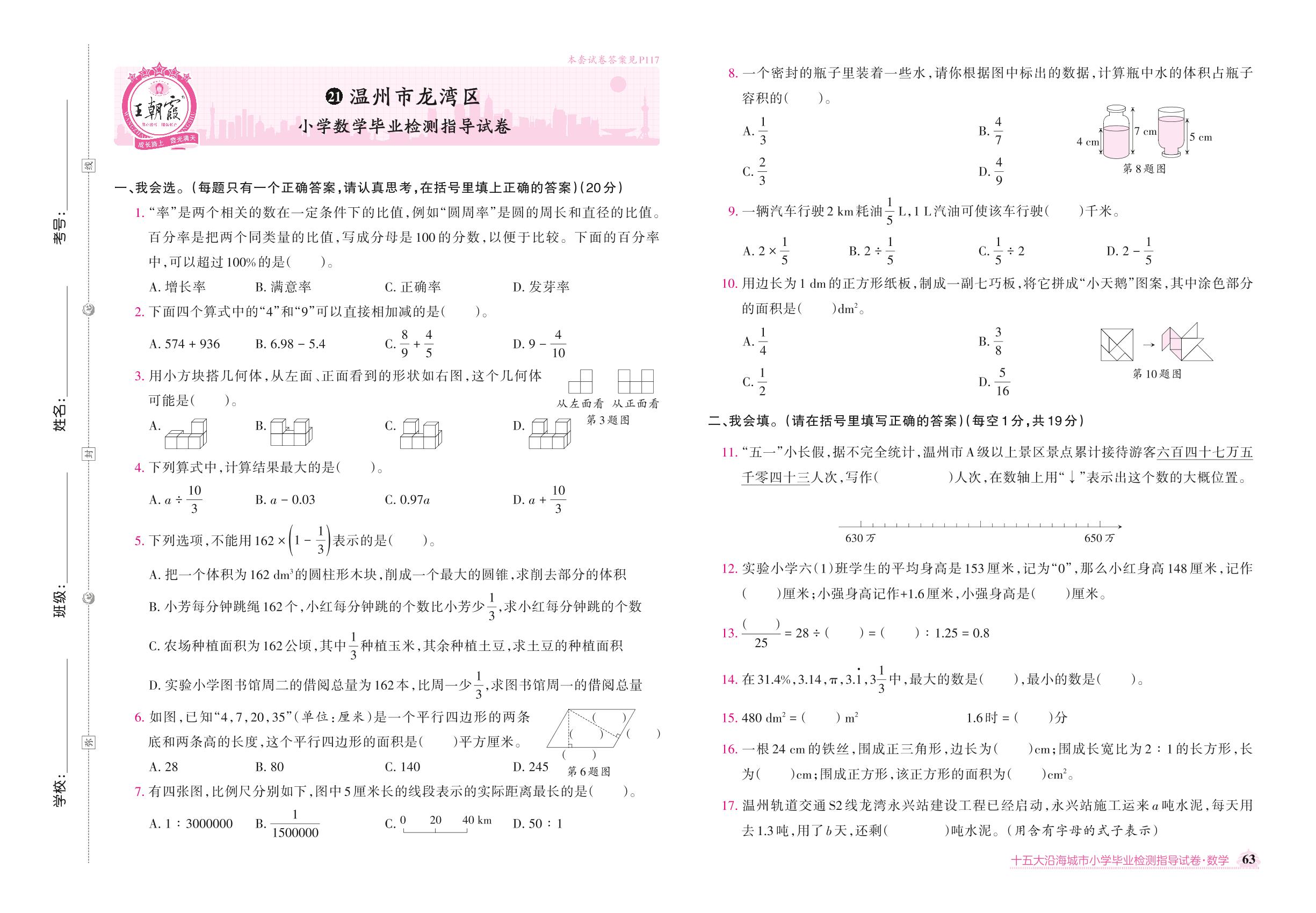 温州市龙湾区小学数学毕业检测指导试卷【21】