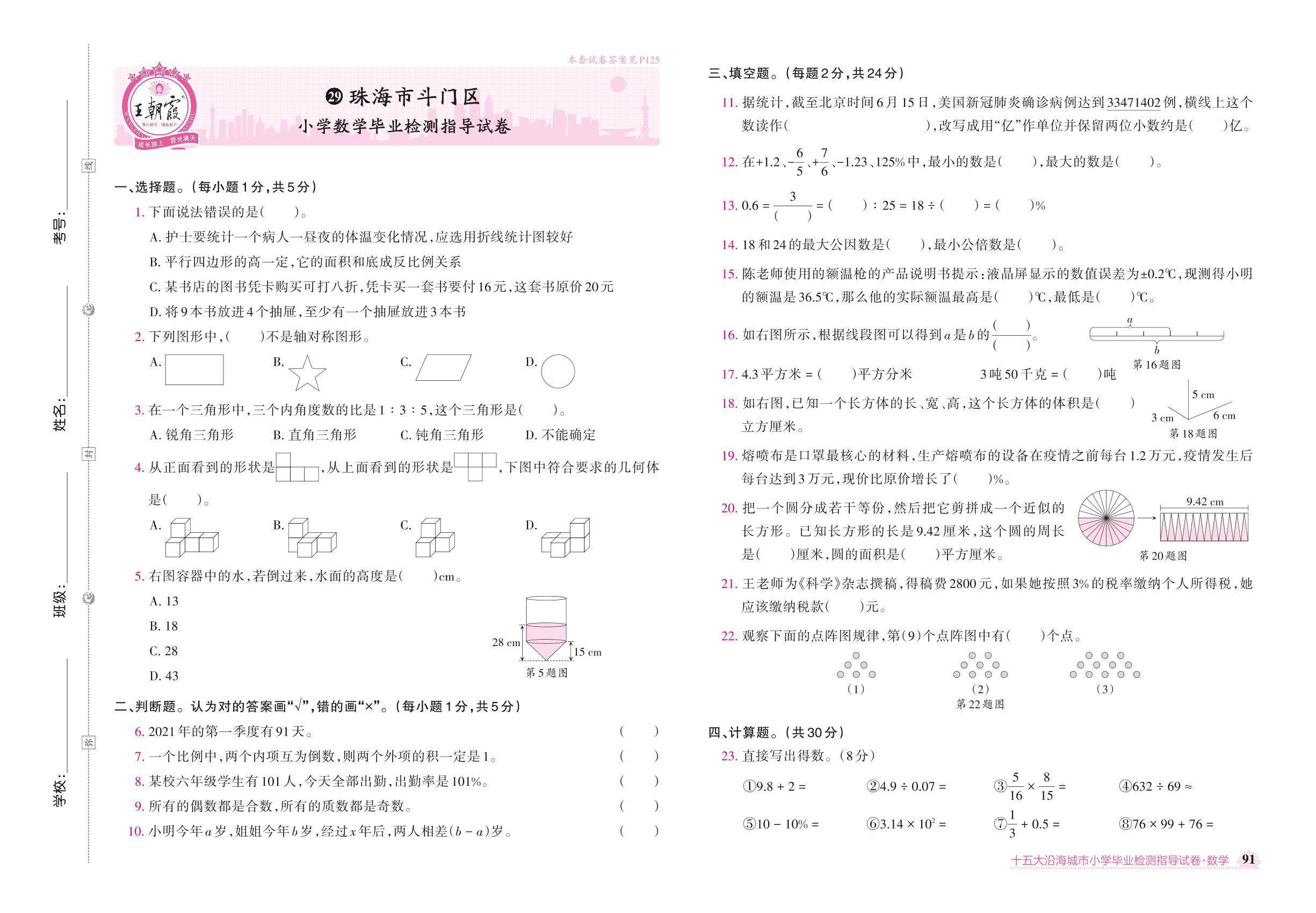 珠海市斗门区小学数学毕业检测指导试卷【29】
