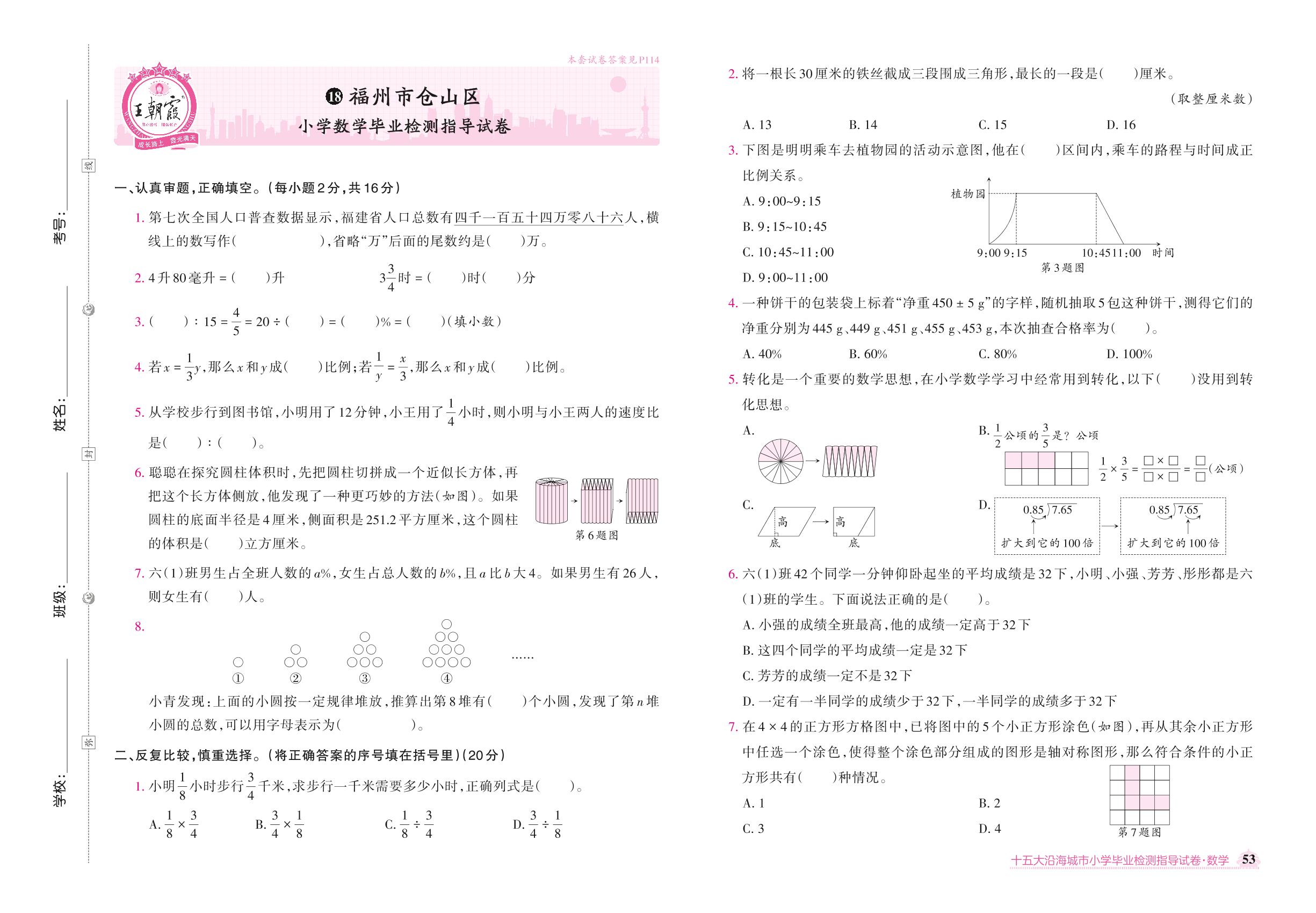 福州市仓山区小学数学毕业检测指导试卷【18】