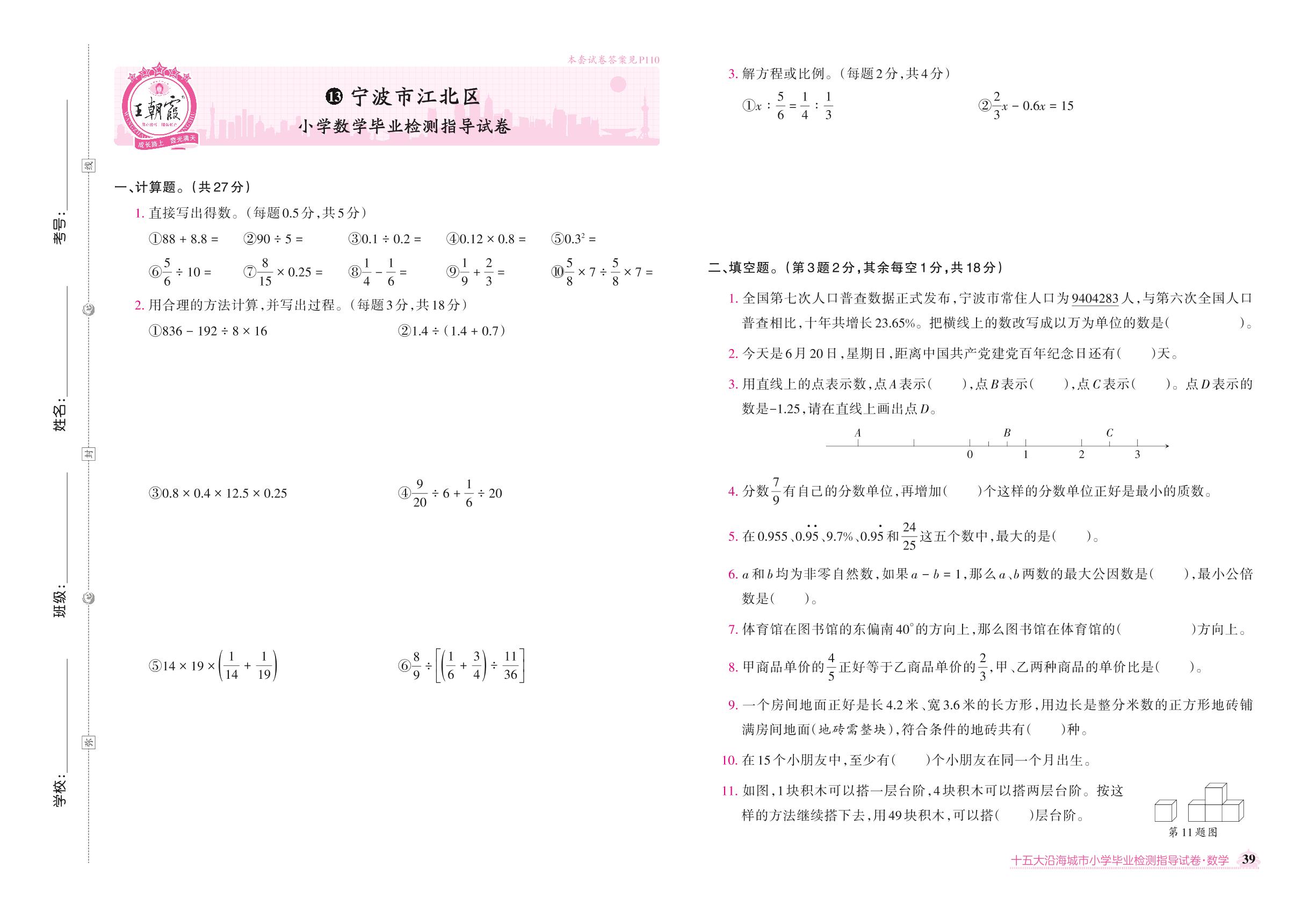 宁波市江北区小学数学毕业检测指导试卷【13】