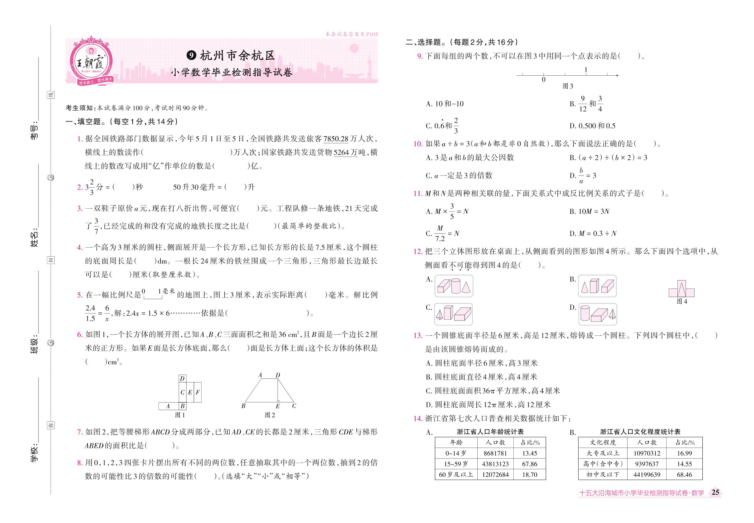 杭州市余杭区小学数学毕业检测指导试卷【9】