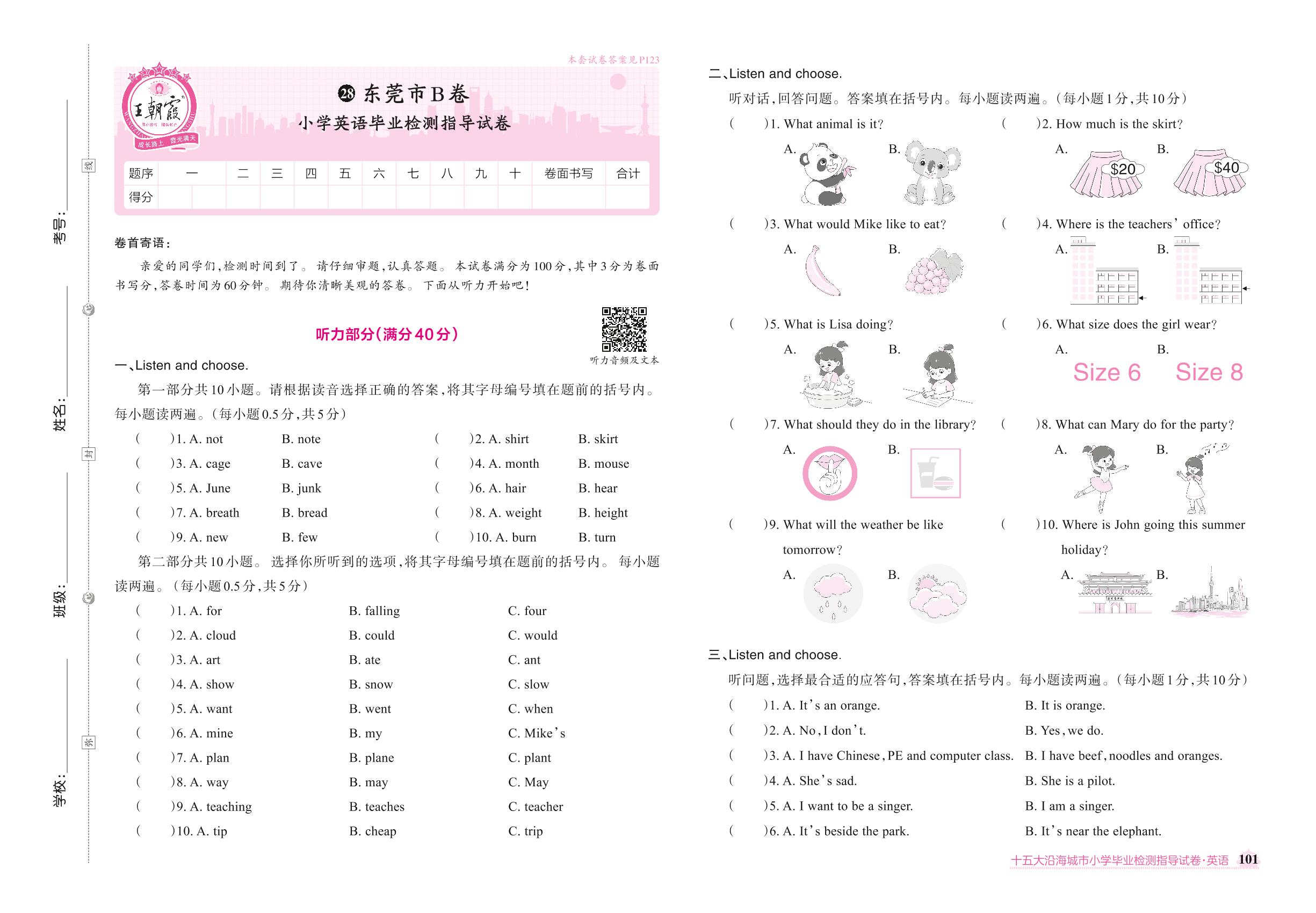 东莞市B卷小学英语毕业检测指导试卷【28】